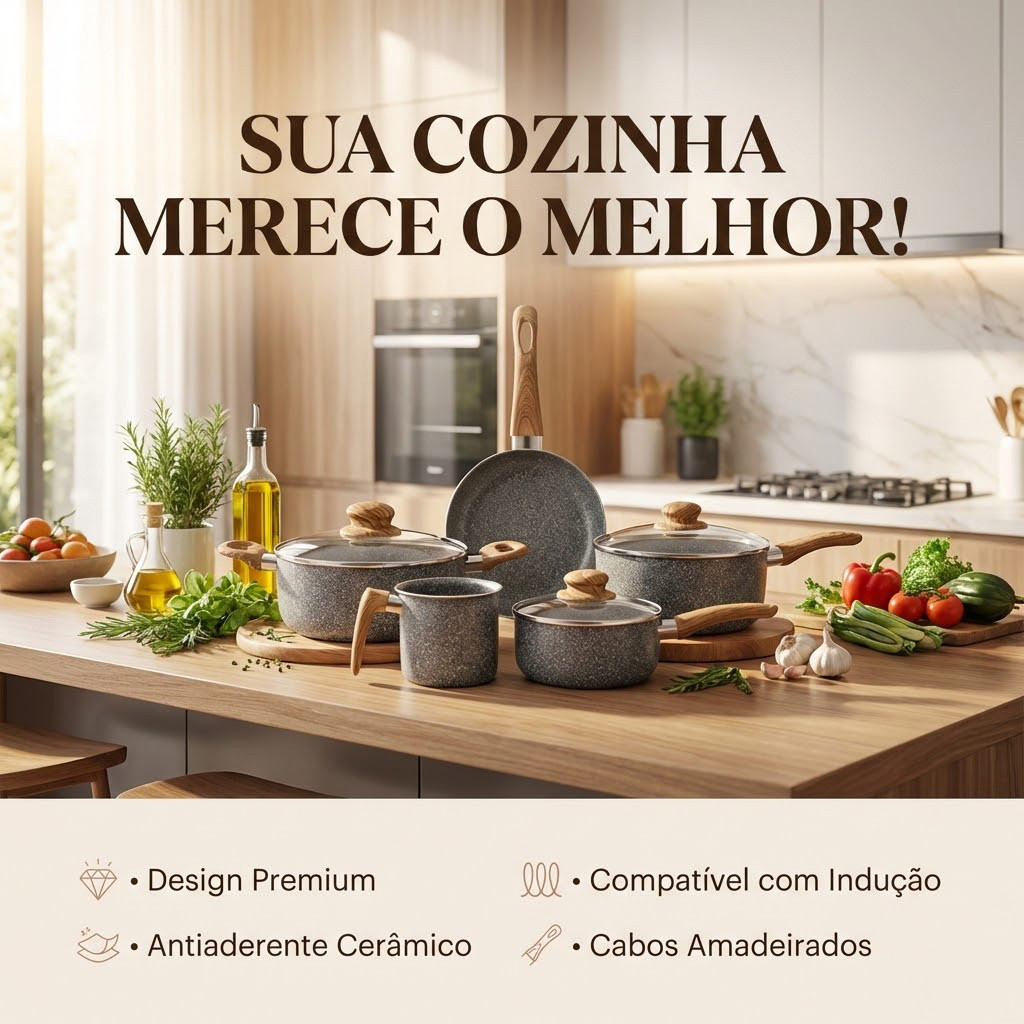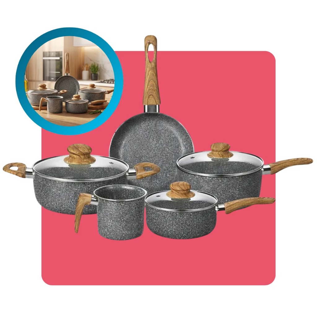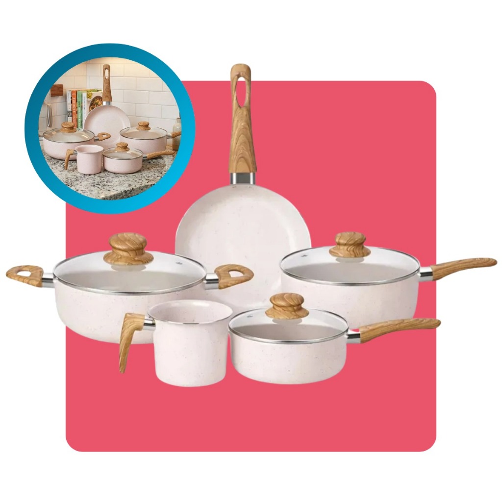 Kit Jogo 5 Peças Panelas Fogão Indução Elétrico Gás Conjunto Revestimento Cerâmico Alumínio Tippi