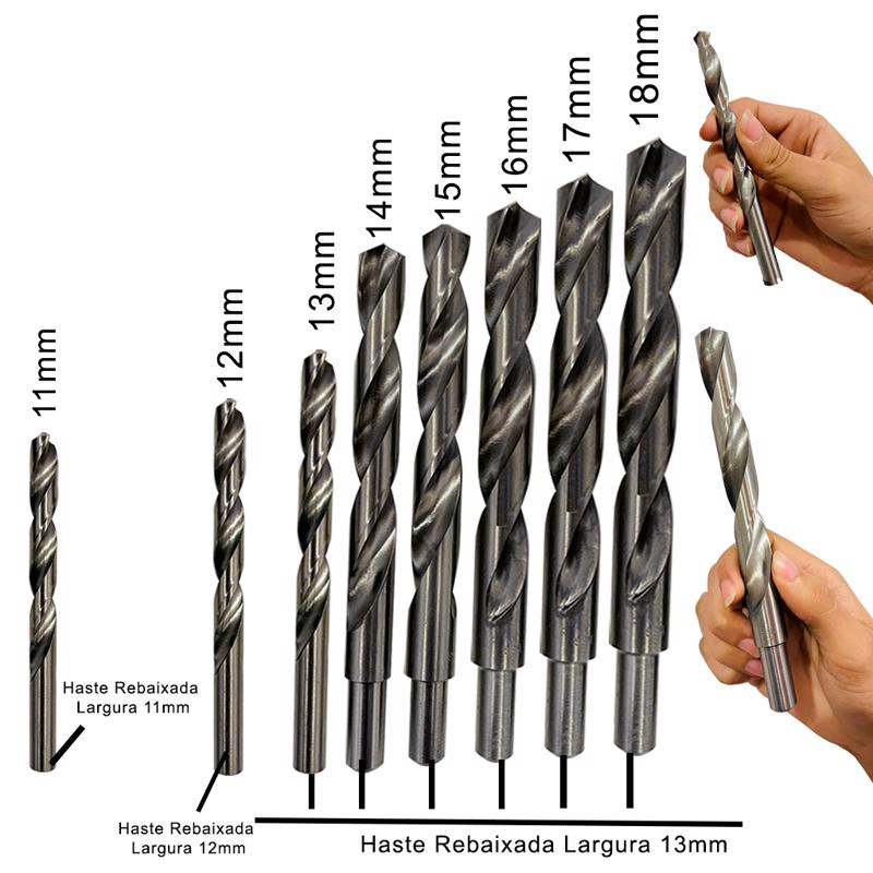 Kit Jogo 8 Brocas Aço Rápido Para Metal Madeira 11,12,13,14,15,16,17,18mm Haste Rebaixada