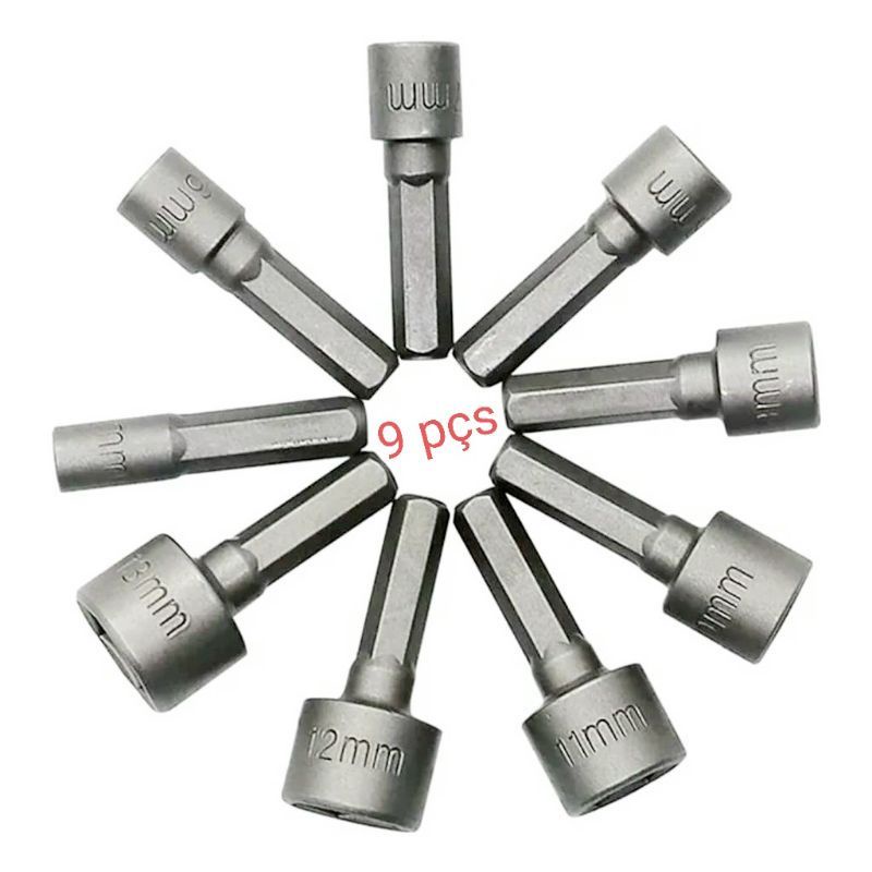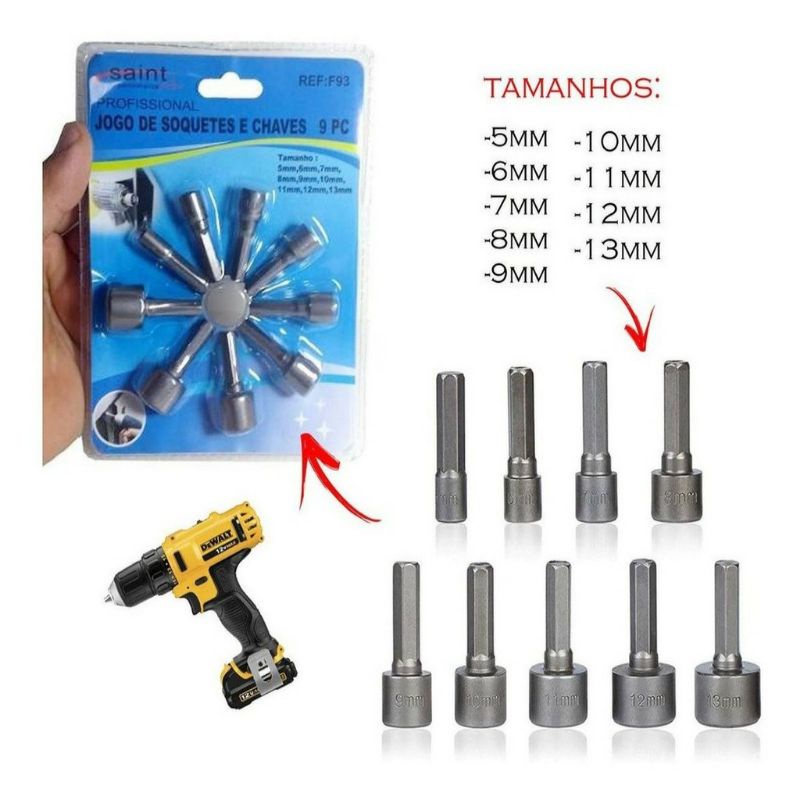Kit Jogo 9 Bits Soquetes Parafusadeira Chave Manual 5 a 13mm Barato