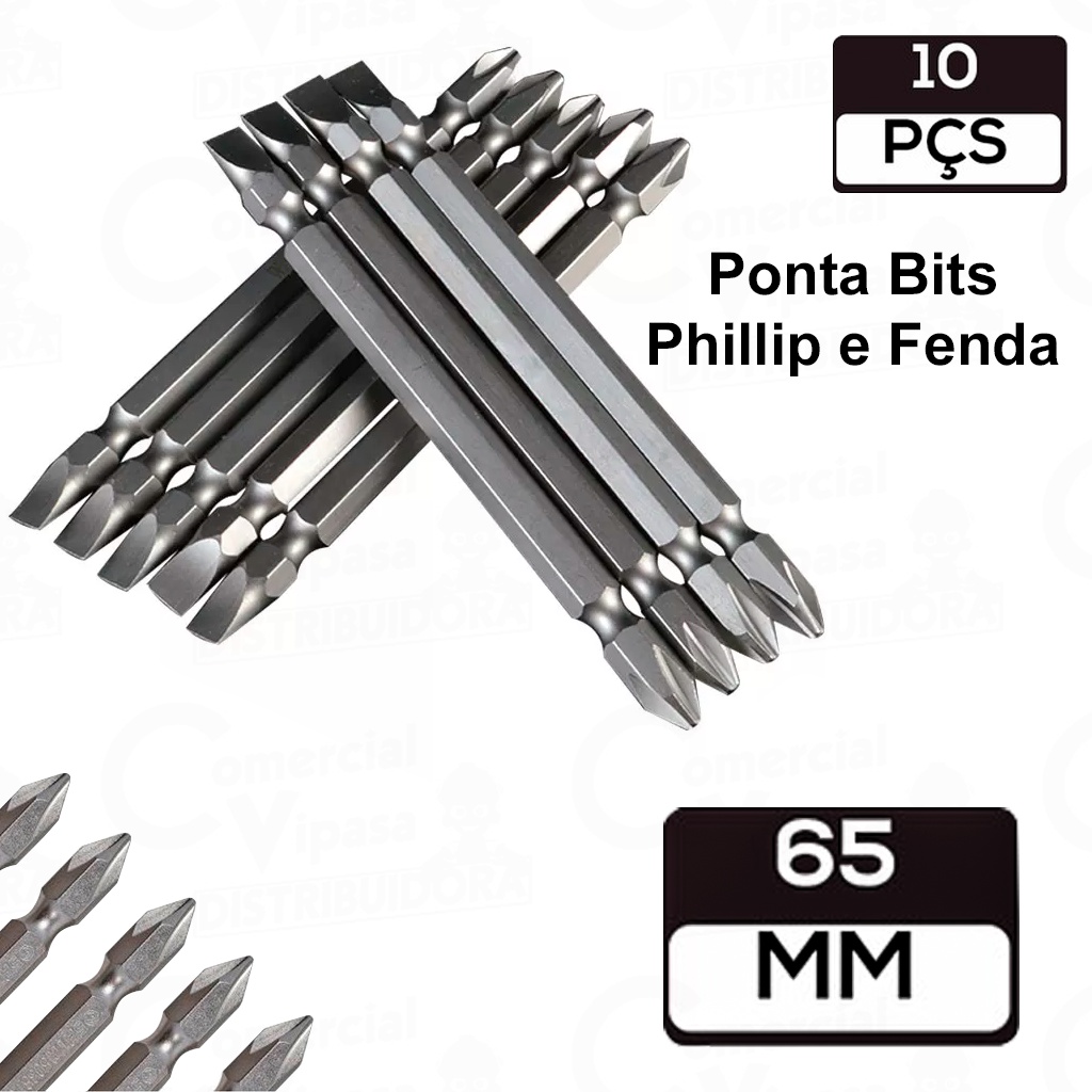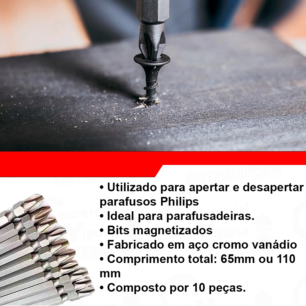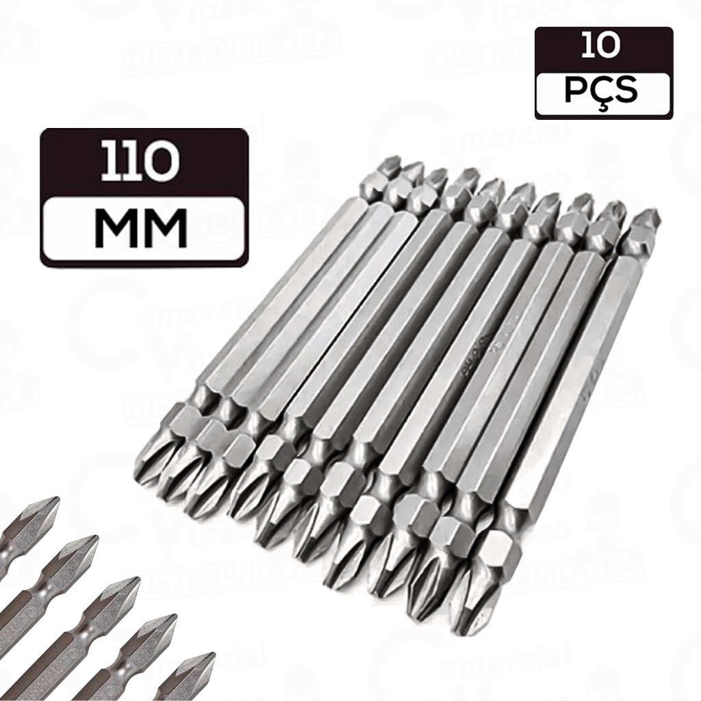 Kit Jogo Bits Para Parafusadeira Imantada Com 10 Pontas Phillips - Philips Dupla 65mm Ou 110mm