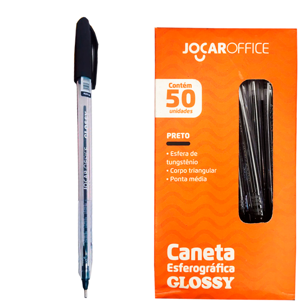 Kit Jogo Caixa De Canetas Esferográficas Glossy My Tech Várias Cores Ponta Média Esférica
