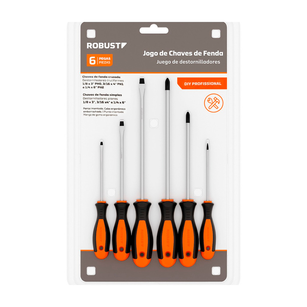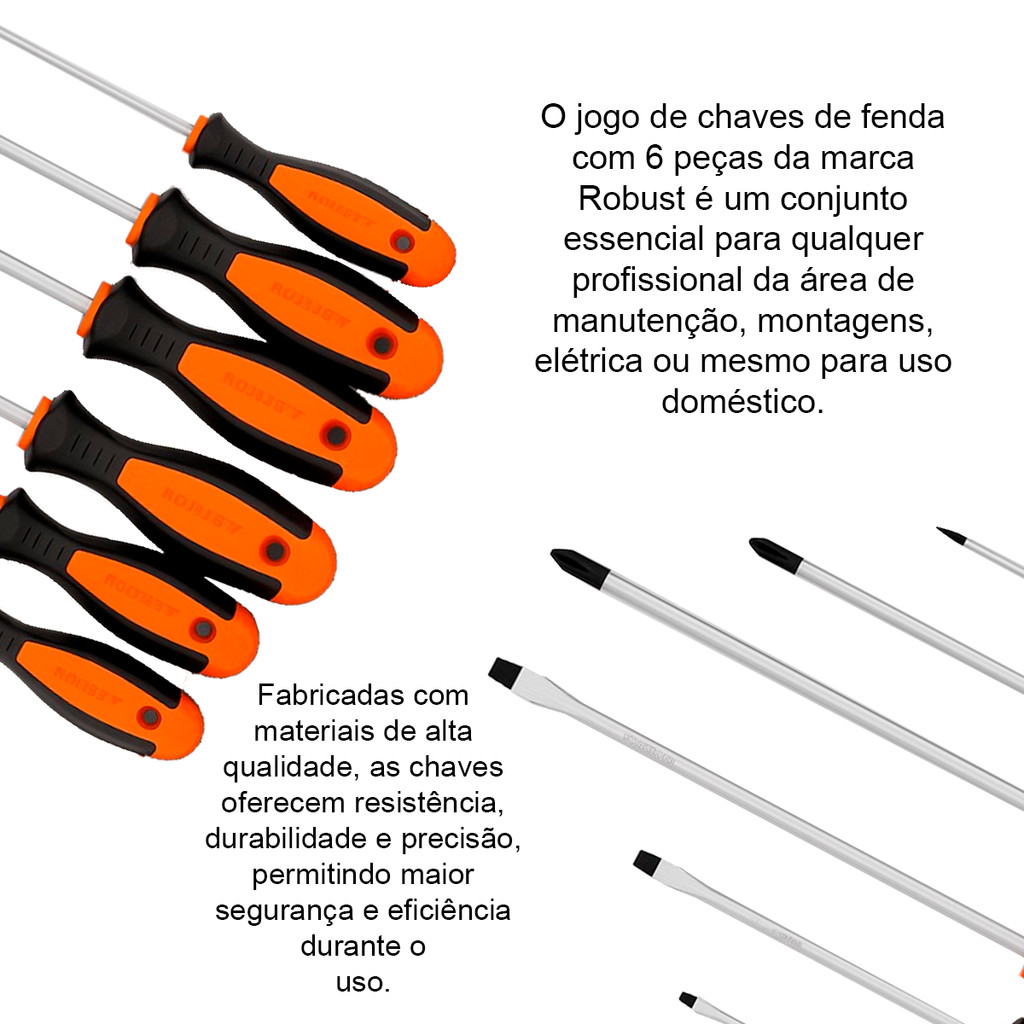 Kit Jogo Chave Fenda ROBUST Original 6 Peças Em Aço Cr-V Cromo Vanádio Profissional Super Resistente