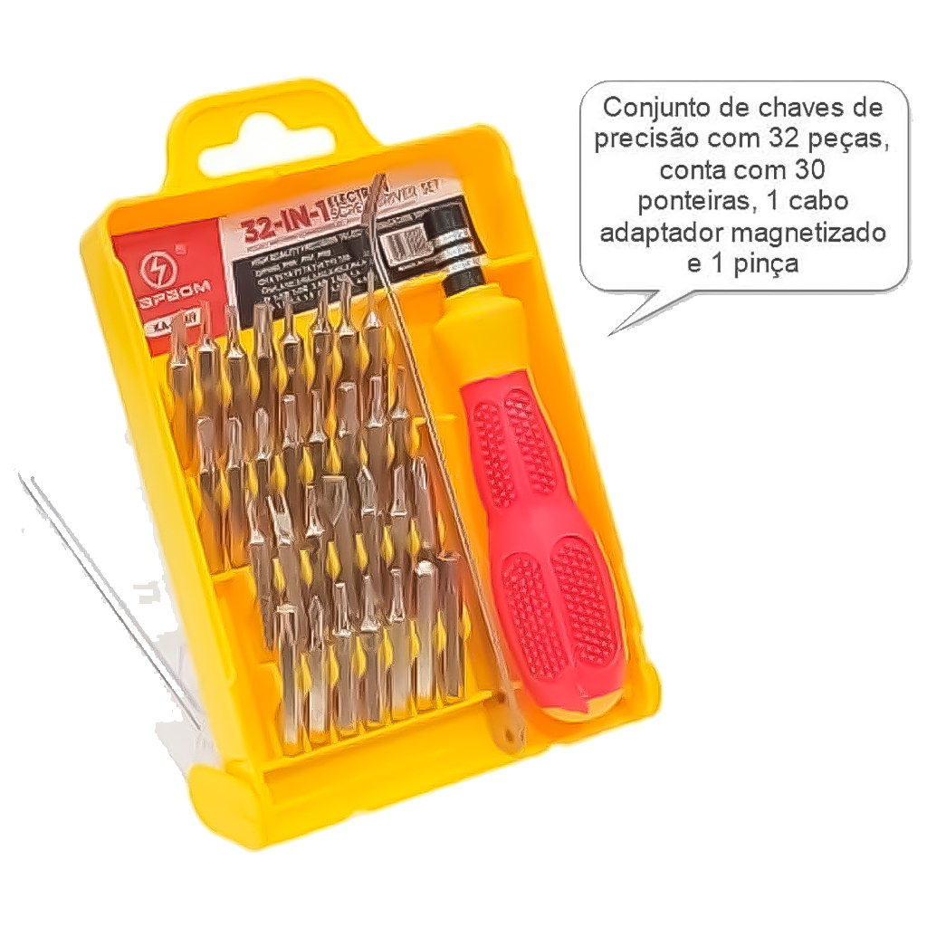 Kit Jogo Chaves 32 Peças de Bits chaves de Precisão Philips e Fenda para Computadores
