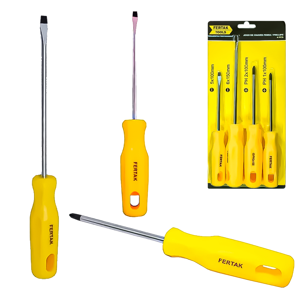 Kit Jogo Chaves Fenda E Philips 4 Peças Multiuso Doméstico Geral Aperto Desaperto Parafusos