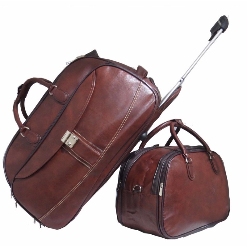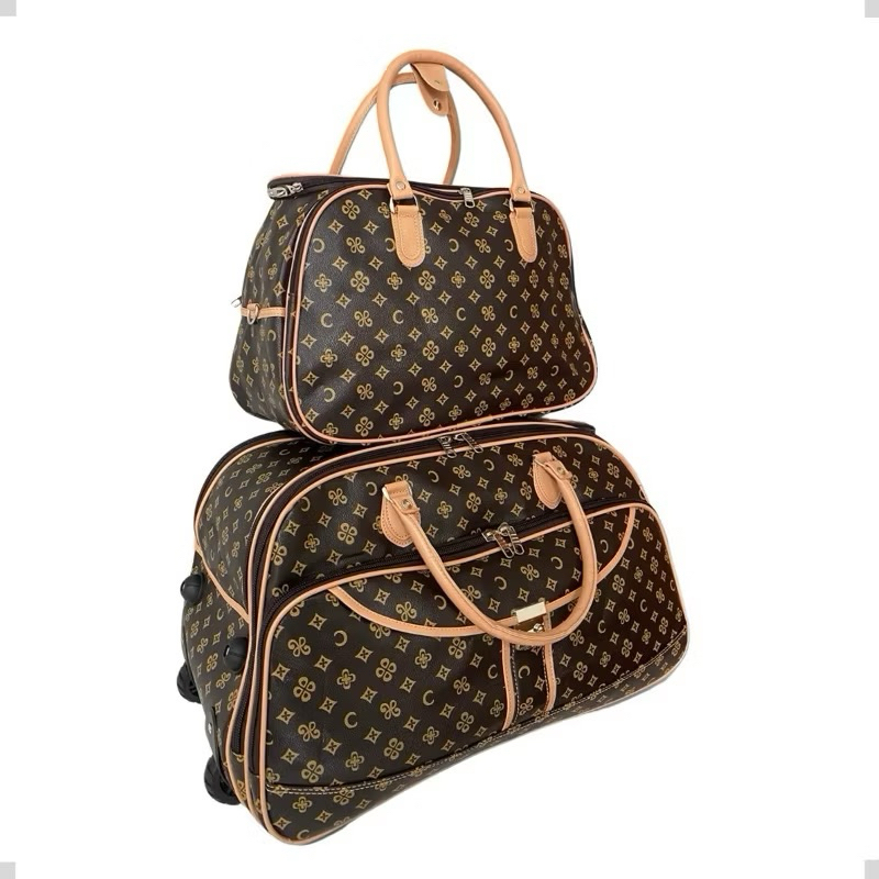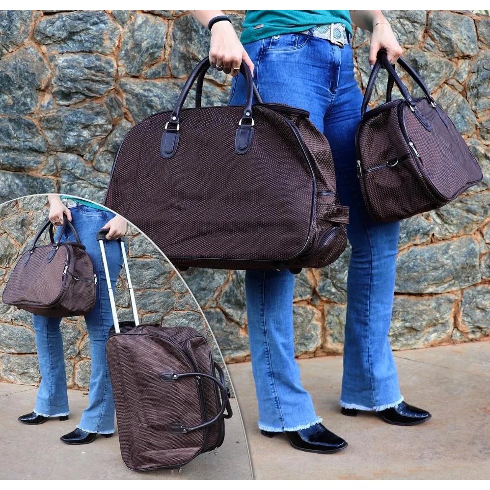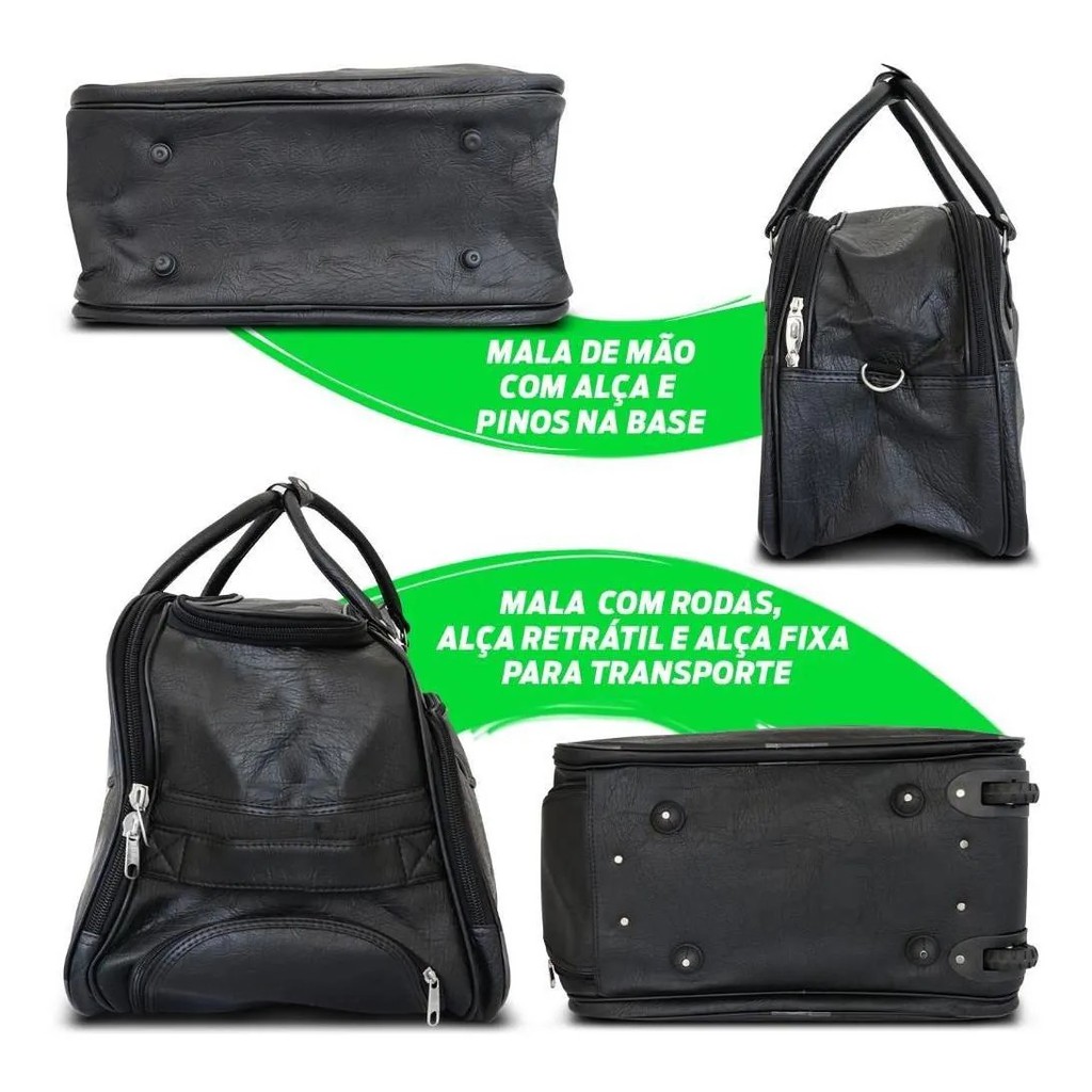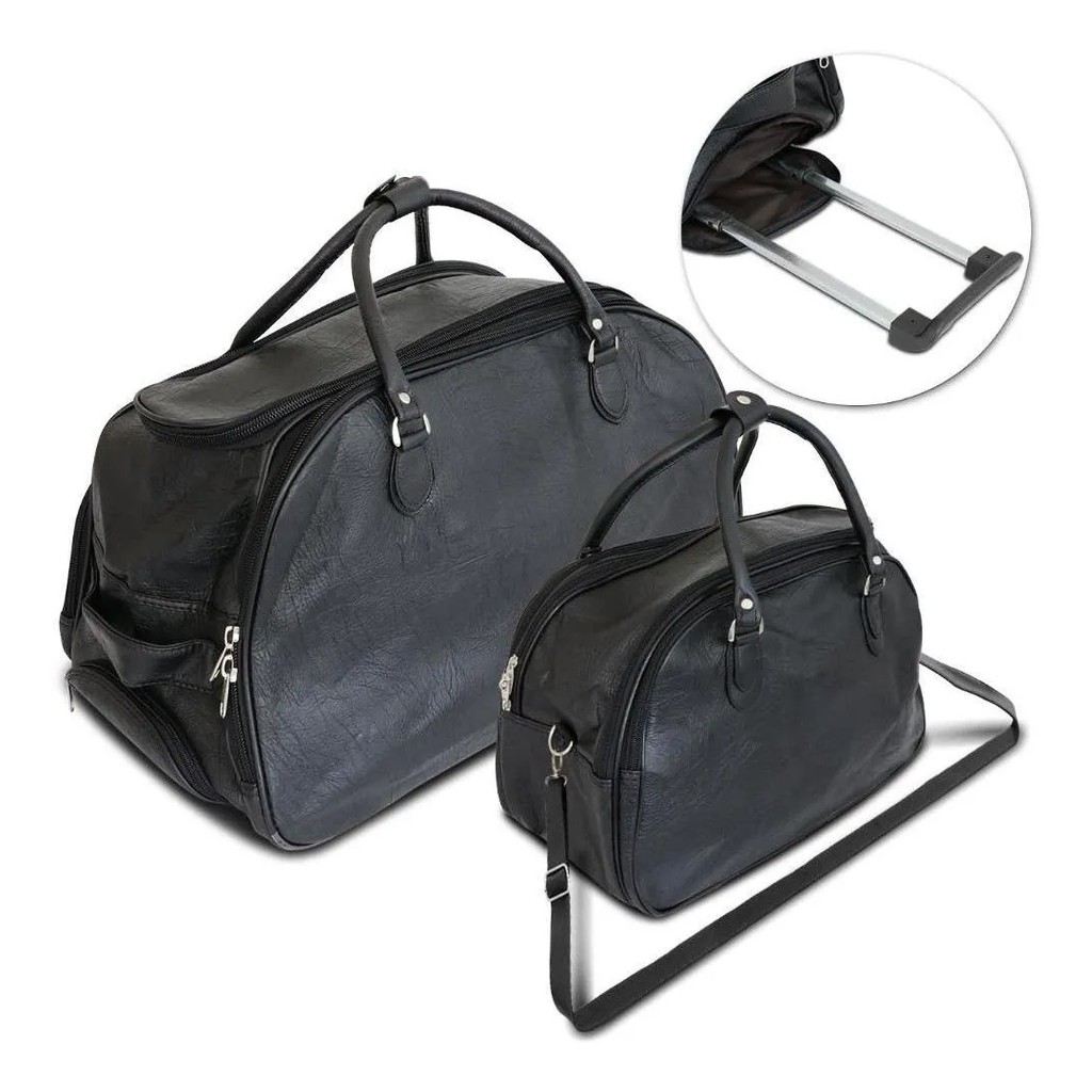 Kit Jogo Conjunto Bolsas de Viagem Mala com Rodinhas E Bolsa de Mão Couro Sintético