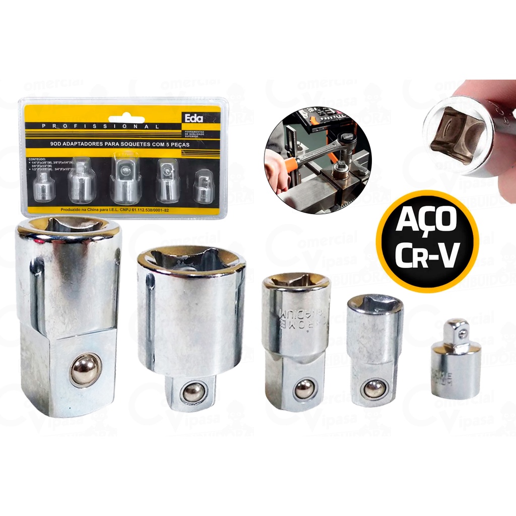 Kit Jogo De Adaptadores 5 Peças Aço Cromo Vanádio Para Soquetes Profissional Várias Medidas