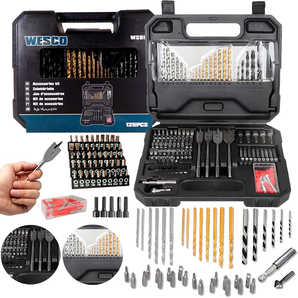 Kit Jogo De Brocas E Bits Videa Com 125 Peças Profissional Madeira Concreto Ferro Plástico - WESCO