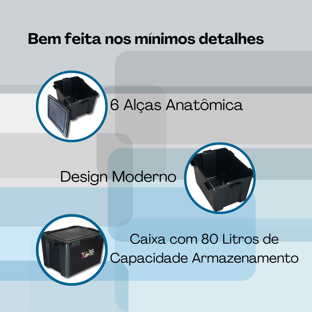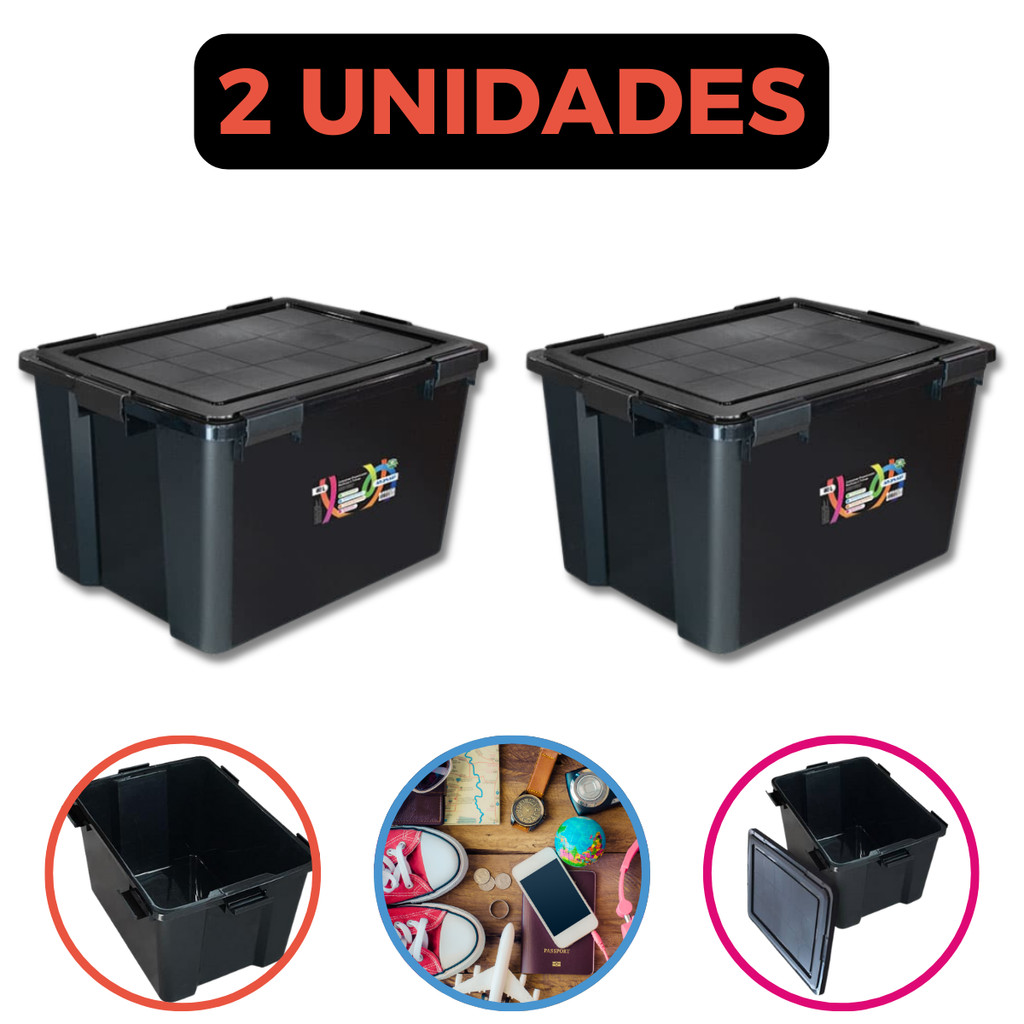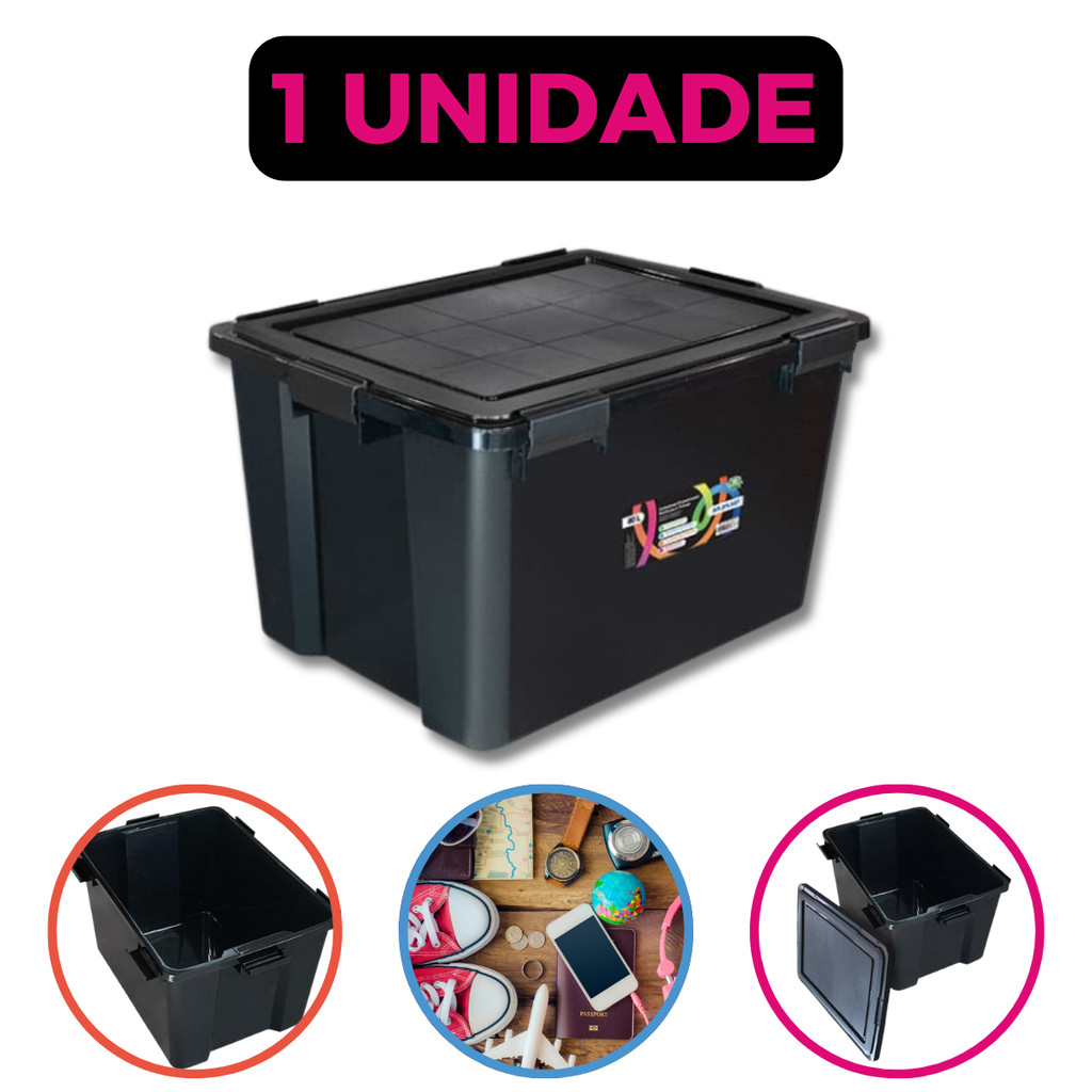Kit Jogo Com Até 4 Caixas Organizadoras 80 Litros Multiuso com 6 Travas Resistente Roupas Brinquedos
