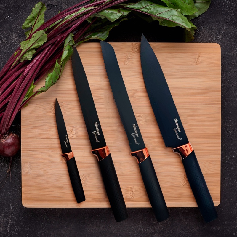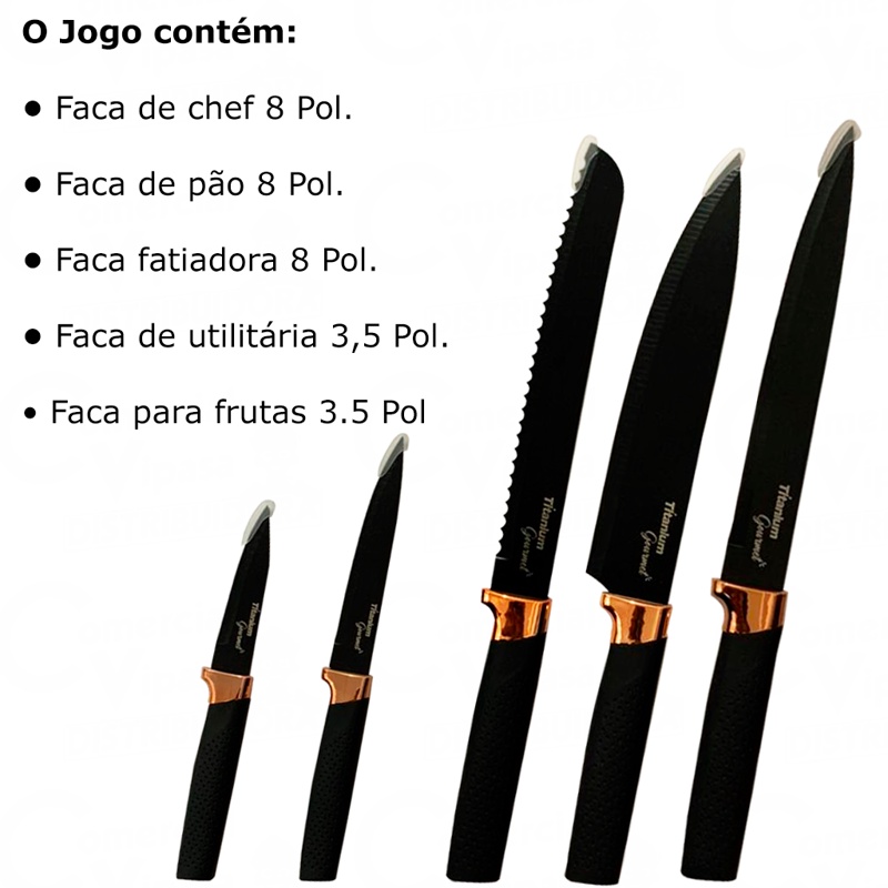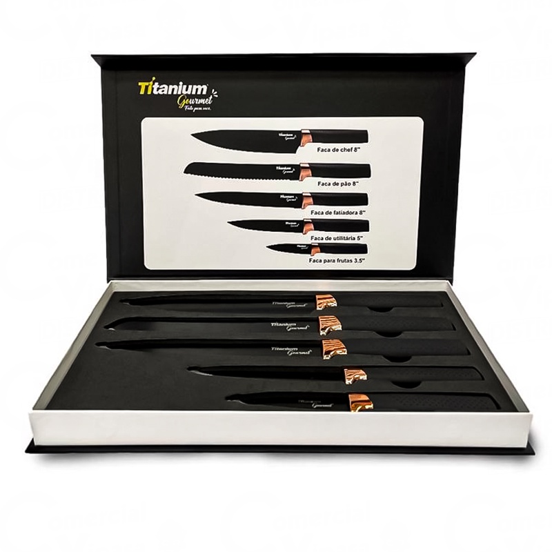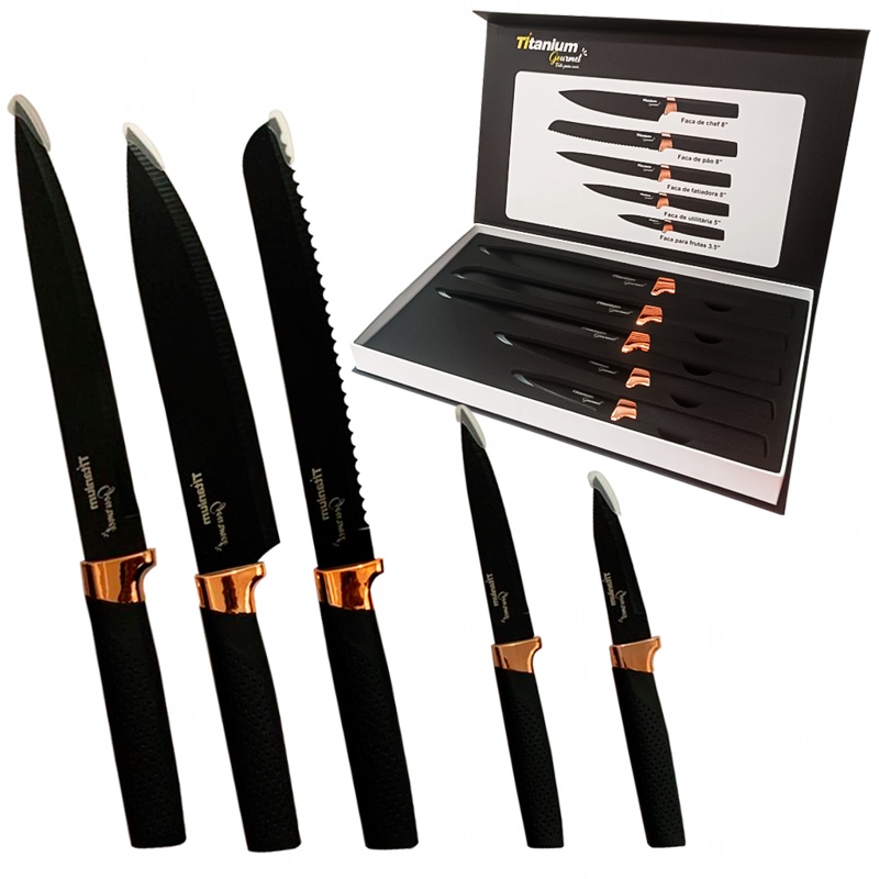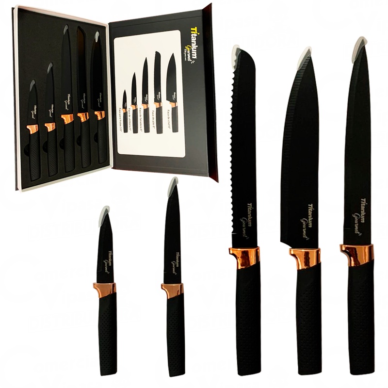 Kit Jogo De Facas Gourmet De 5 Peças Aço Inox Cozinha Luxo Design Moderno Profissional Resistente