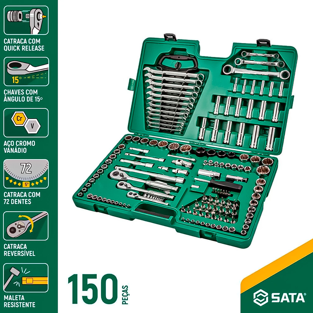 Kit Jogo De Ferramentas Maleta 150 Peças SATA - ST09510L Profissional Em Aço Cr-V Cromo Vanádio
