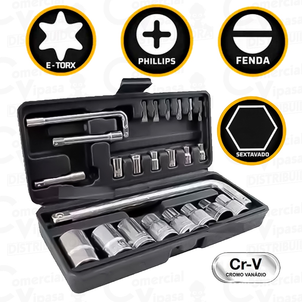 Kit Jogo De Ferramentas Soquetes 24 Peças Cromo Vanádio Completo Titanium