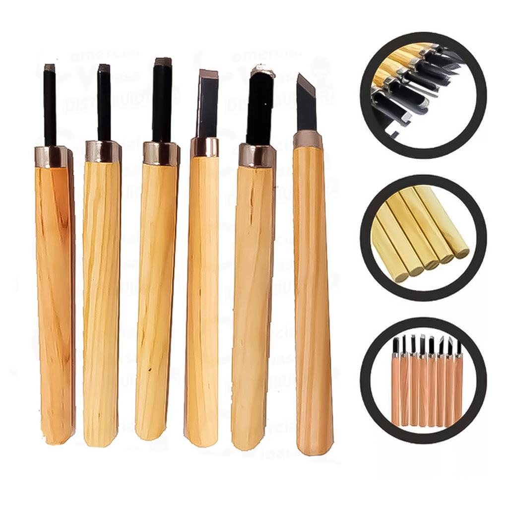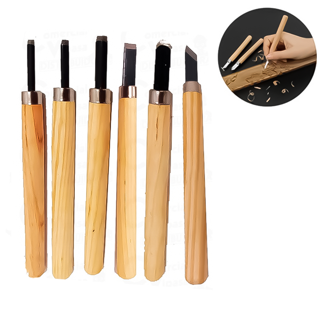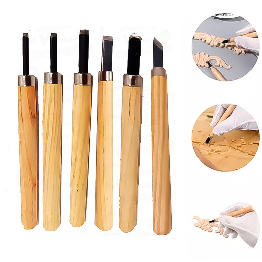 Kit Jogo De Formão Goiva Para Madeira Xilogravura Entalhe Com 6 Peças Ateliê Carpinteiro Marceneiro