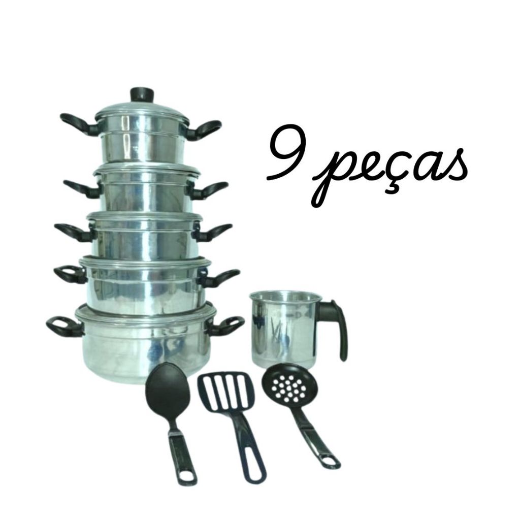 Jogo de Panelas Caçarola Conjunto 9 Peças Kit Leiteira Alumínio Forte Resistente Várias Cores