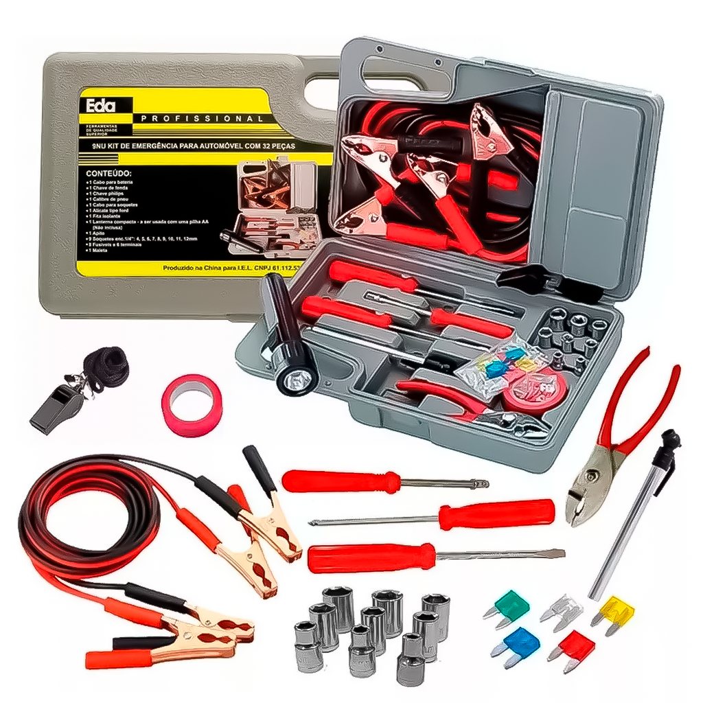 Kit Jogo Ferramentas De Emergência Automotivo Maleta Acessórios + Macaco Hidráulico Carro Moto