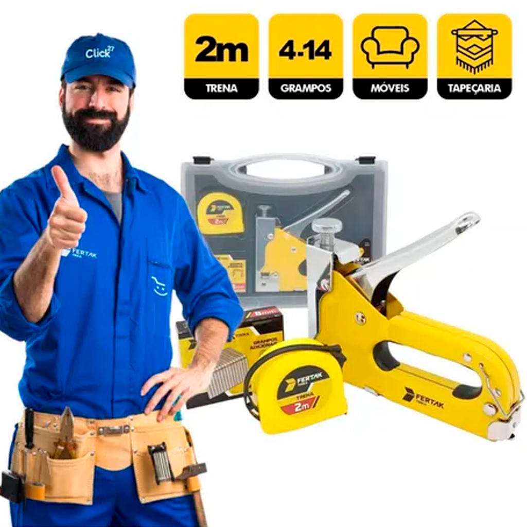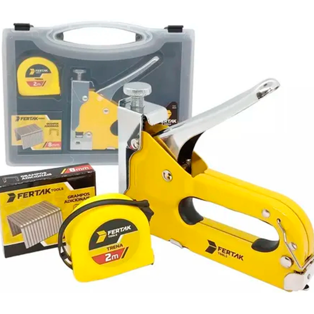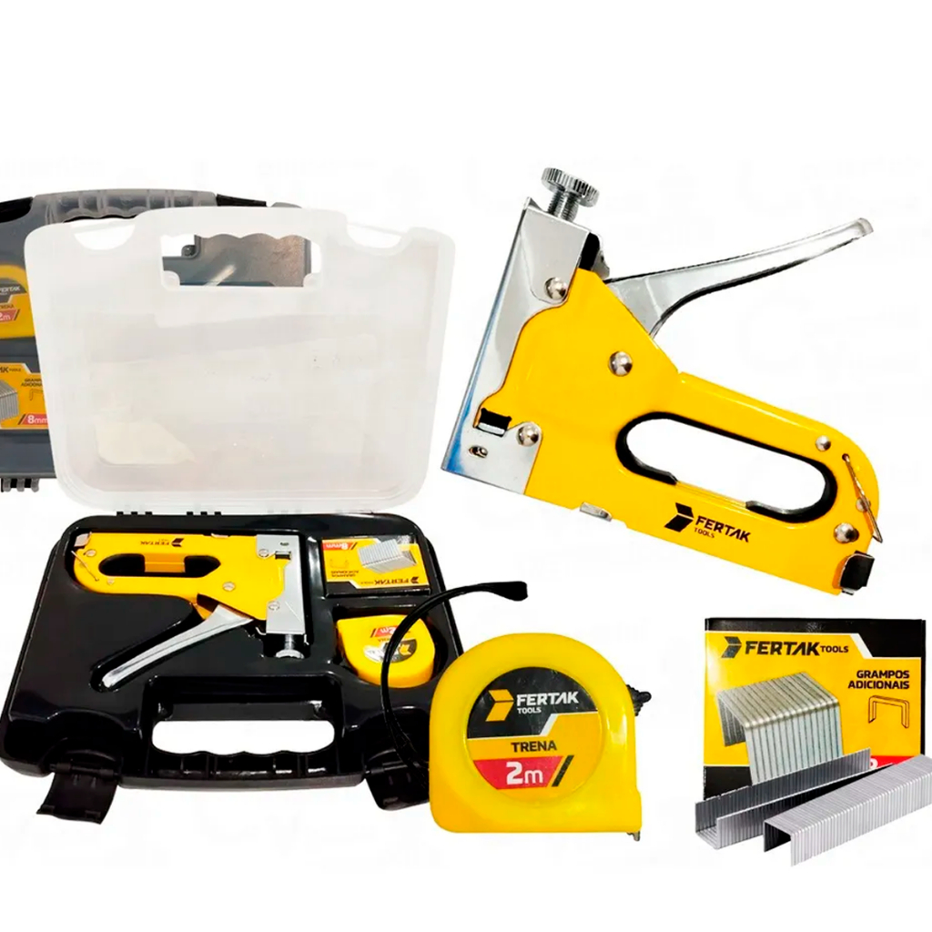 Kit Jogo Grampeador Tapeceiro Manual Alta Pressão Profissional Com Trena Grampos Multiuso Reforçado