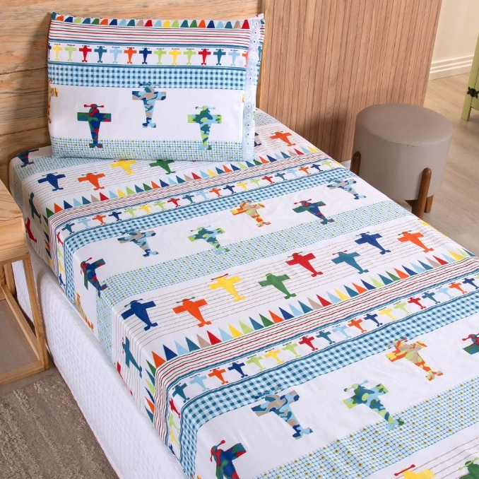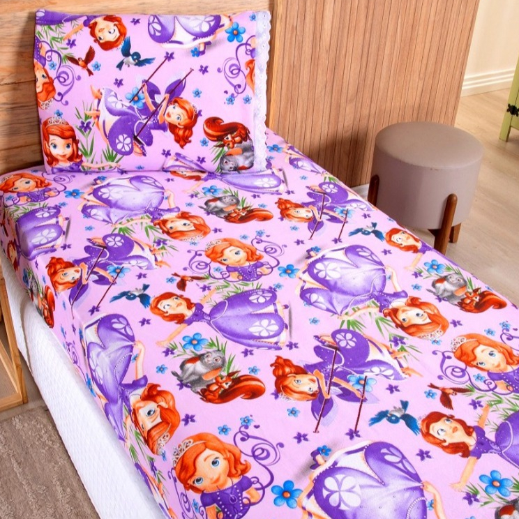 Kit Jogo Lençol Cama Infantil Solteiro Elástico 2 Peças Criança Personagens