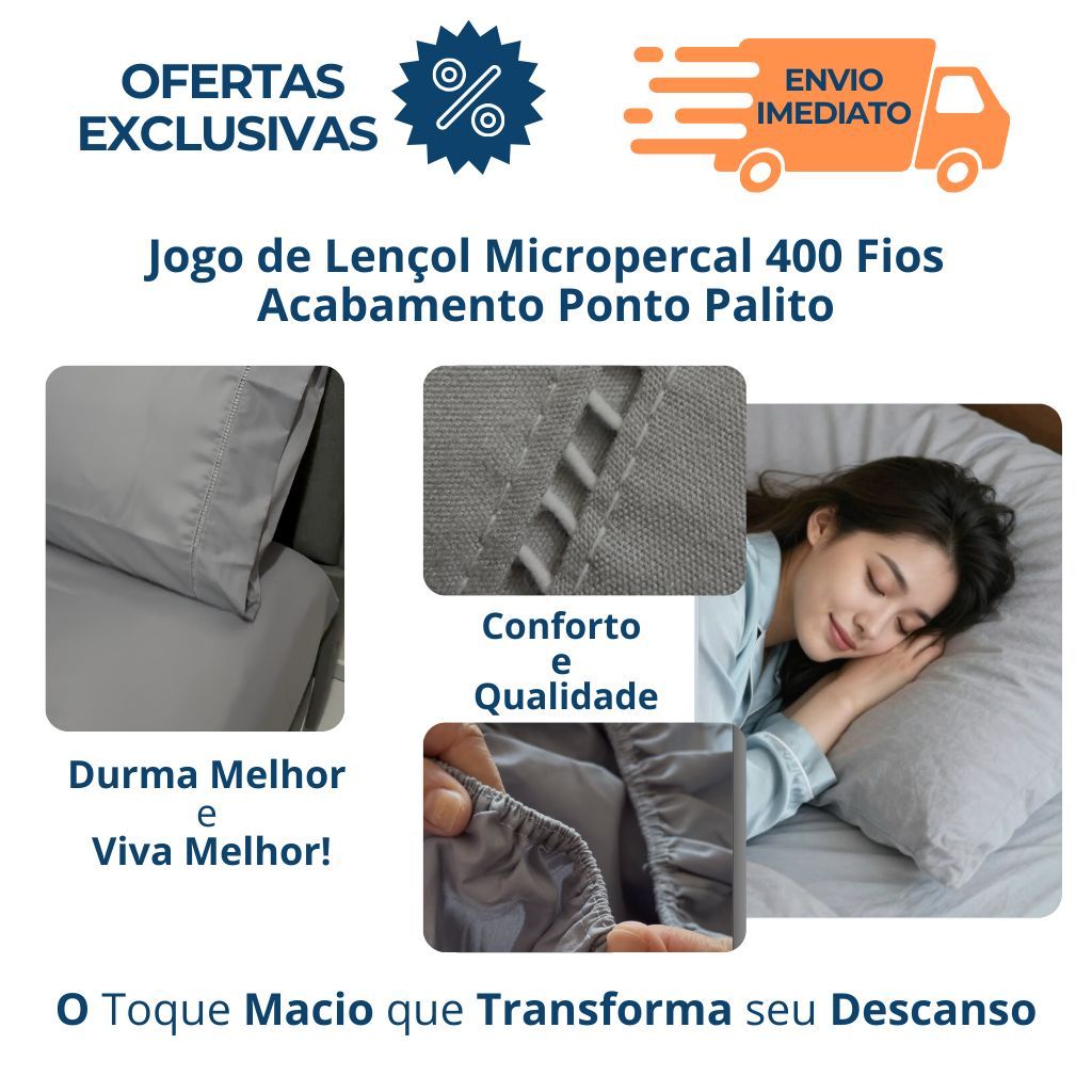 Kit Jogo Lencol Solteiro Casal Queen King Extra Macio 400 Fios Micropercal Com Ponto Palito