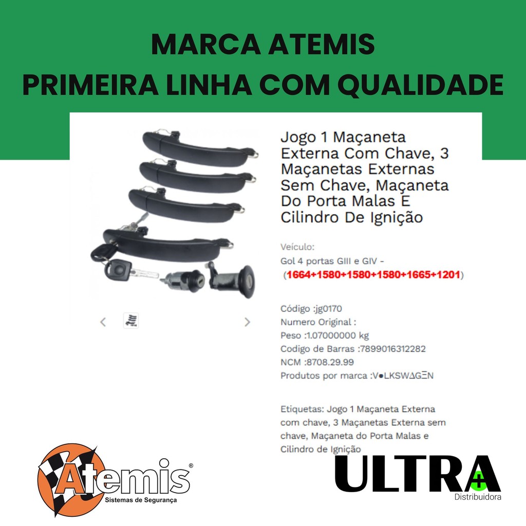 Kit Jogo Maçaneta Externa Porta + Cilindro Porta Malas + Cilindro Ignição para VW Volkswagen Gol / Parati - 4 Portas - G