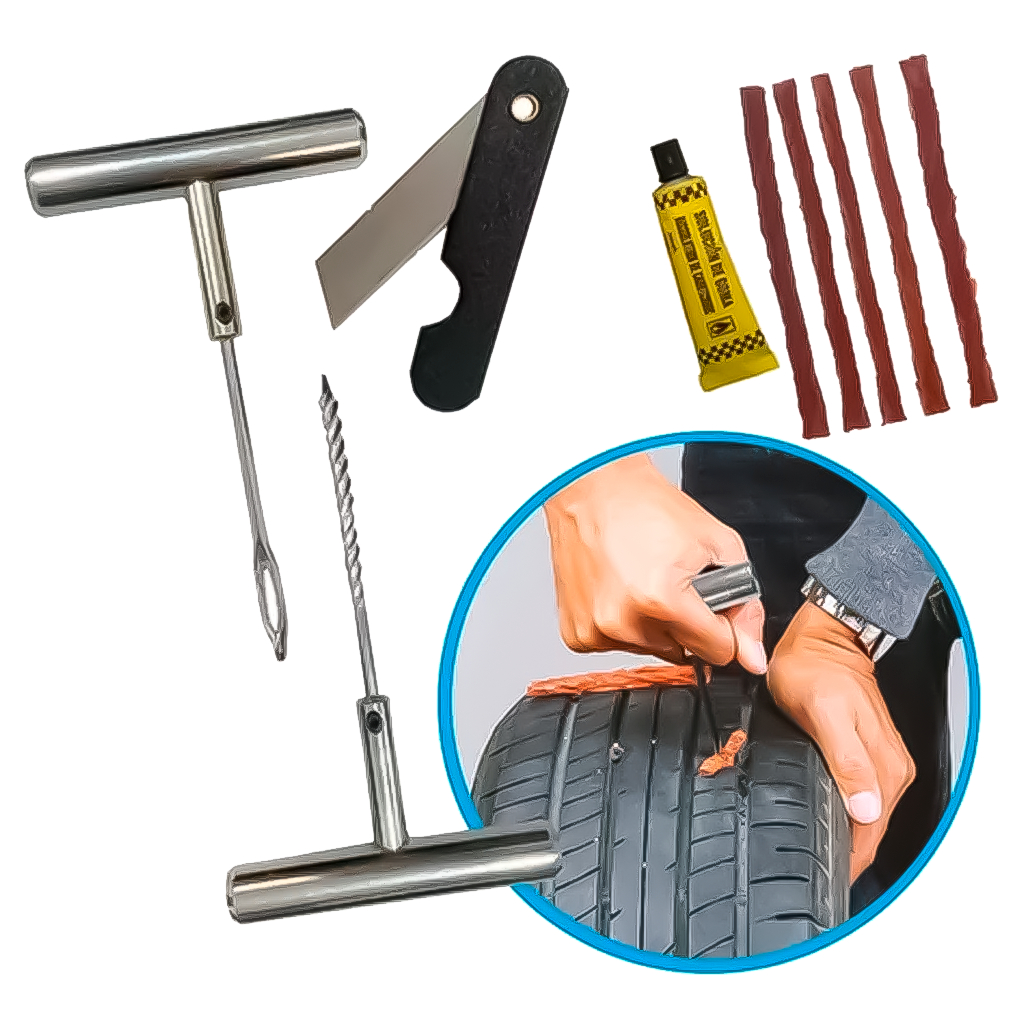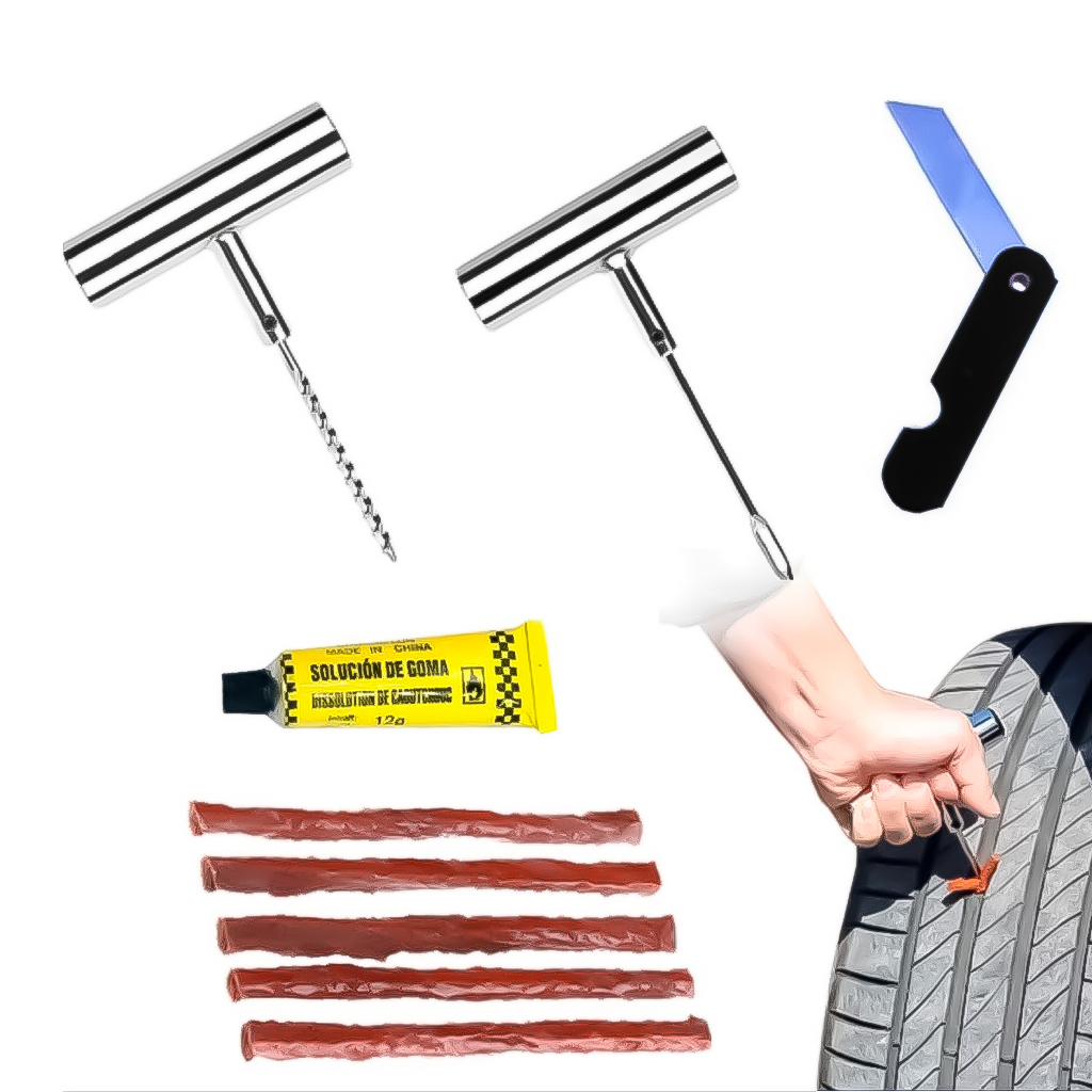 Kit Jogo Reparo de Aço - Ferro Remendo de Pneu Kit de 9 Peças Modelo Macarrão Para Moto e Carro