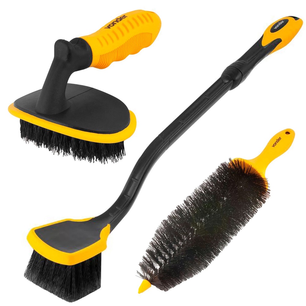 Kit Jogo de 3 Escovas para Limpeza Automotiva para Lavar Carro Moto Rodas e Carpete 3 Peças Vonder