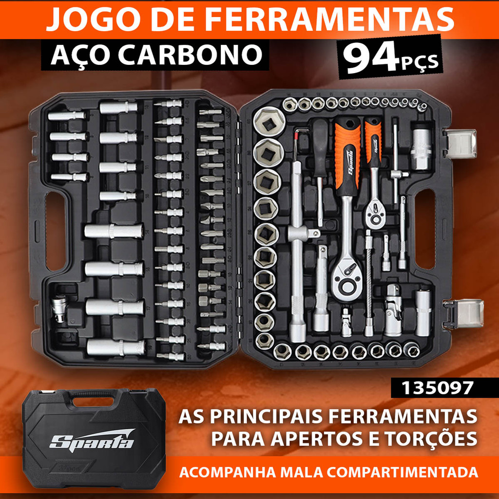 Kit Jogo de Ferramentas 94 Peças Com Maleta Soquete Chave Sparta + Bolsa Mtx