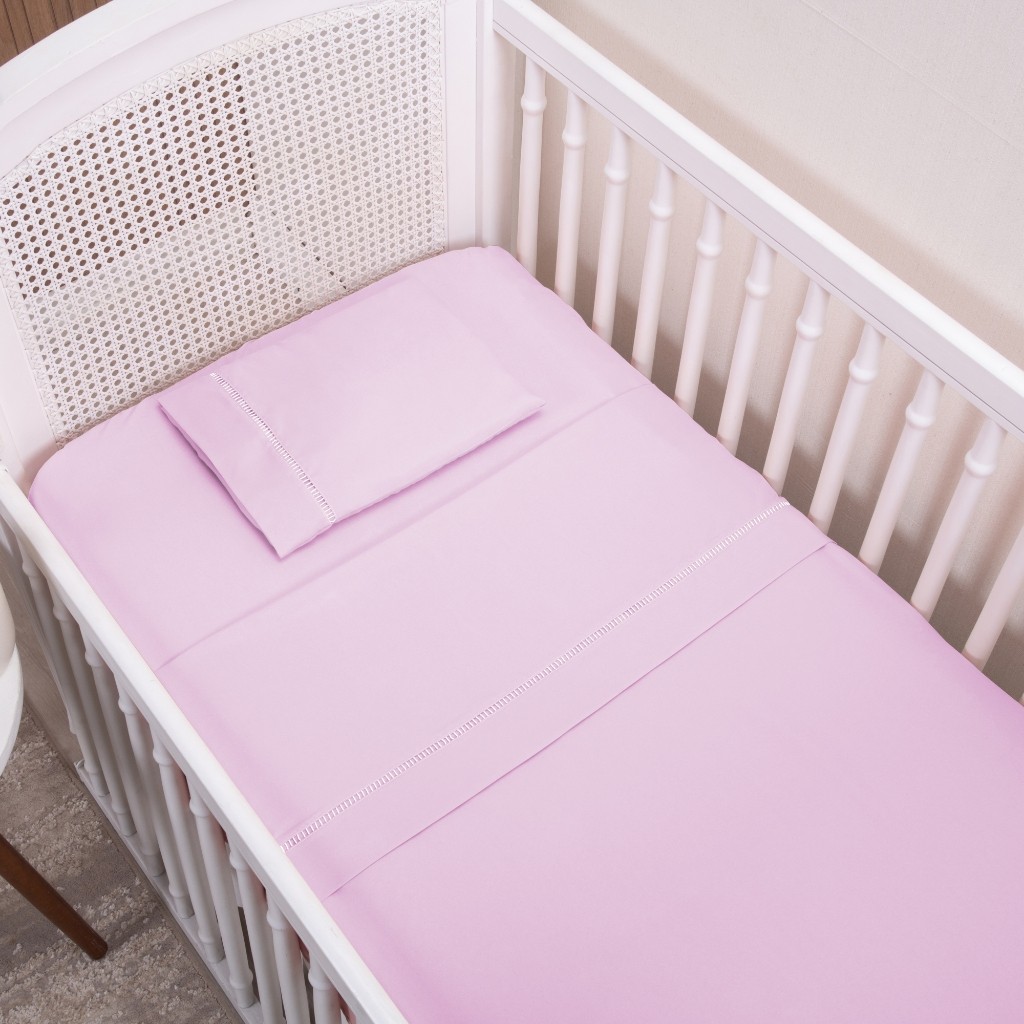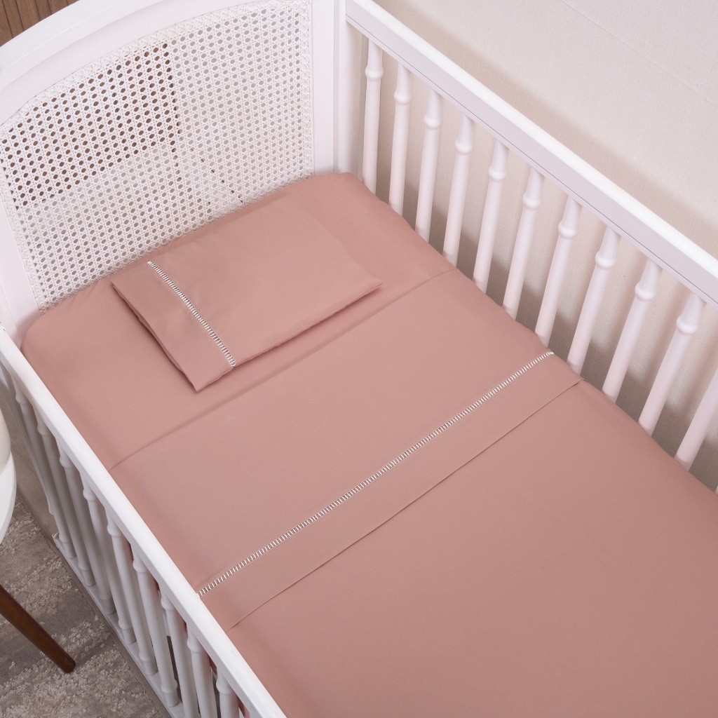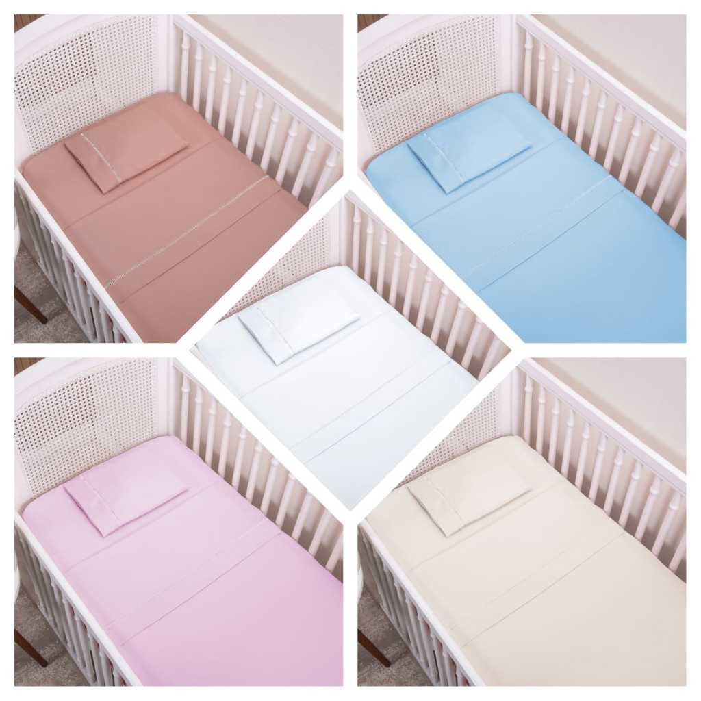 Kit Jogo de Lençol 03 Peças Ponto Palito Padrão Berço Americano Micropercal 200 Fios
