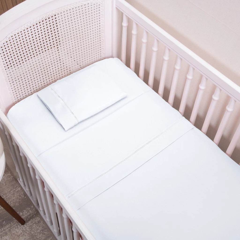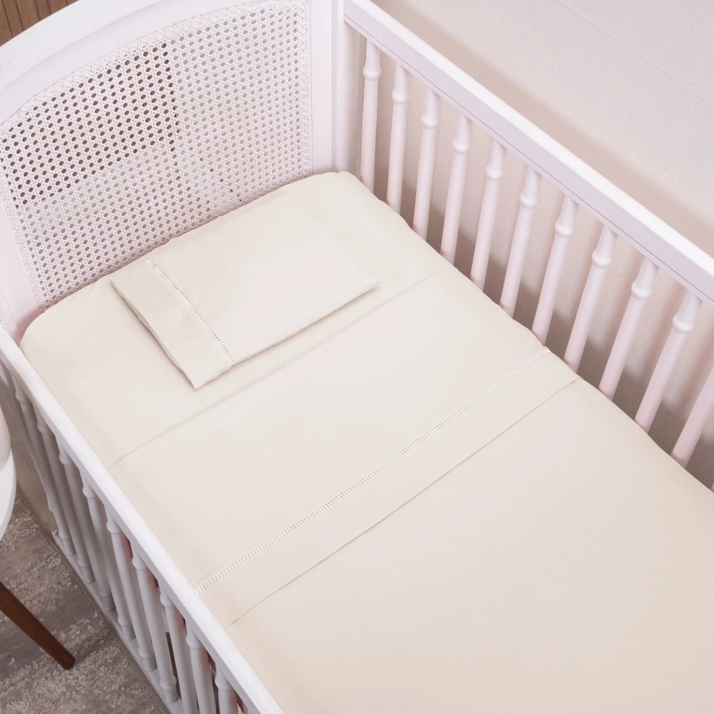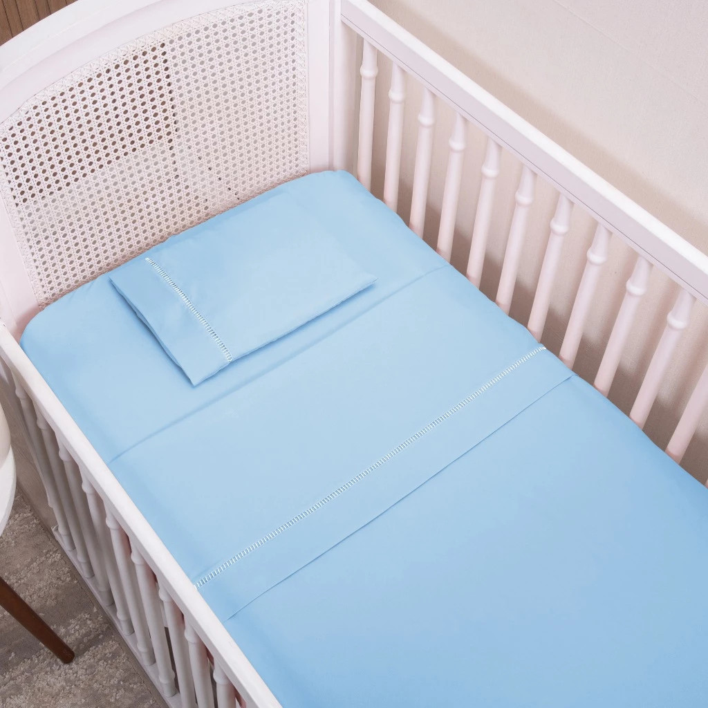 Kit Jogo de Lençol 03 Peças Ponto Palito Padrão Berço Americano Micropercal 200 Fios