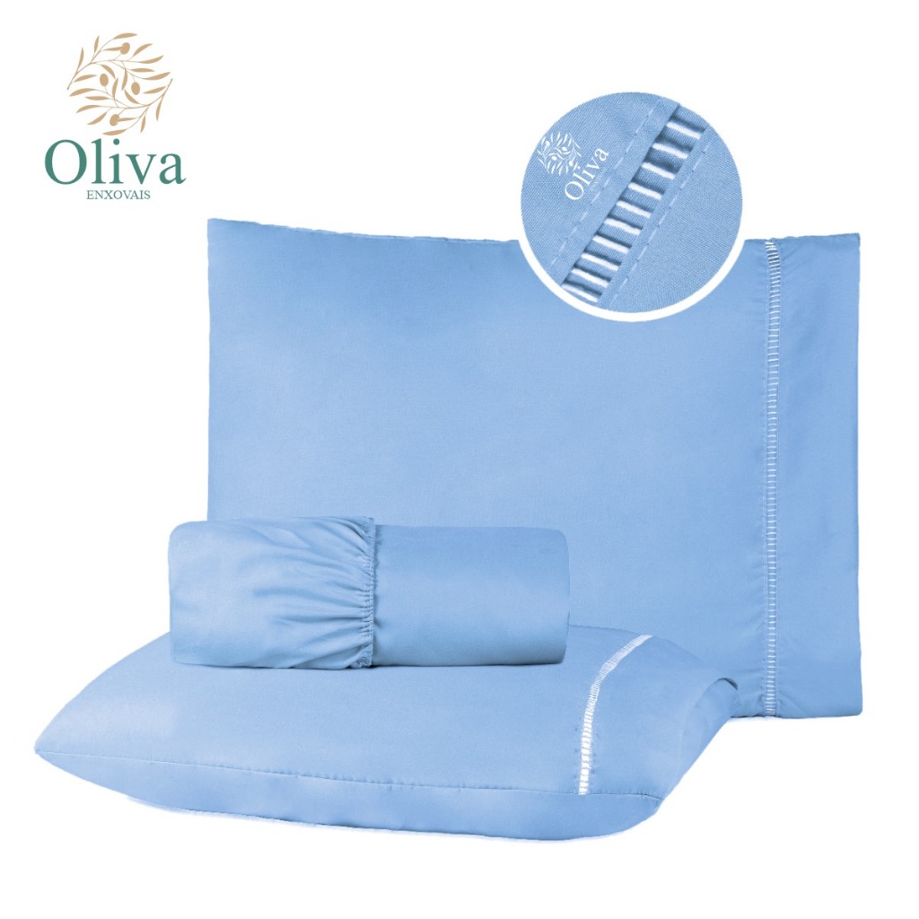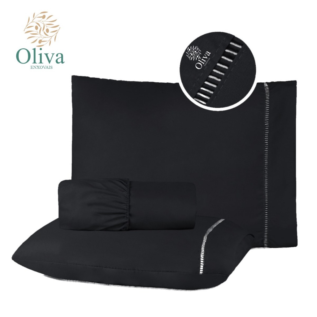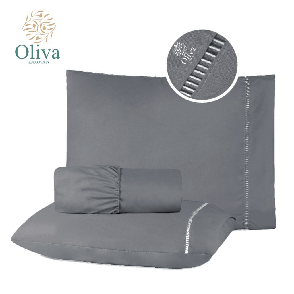 Kit Jogo de Lençol Cama Casal Micropercal 400 Fios com Detalhe em Ponto Palito nas Fronhas