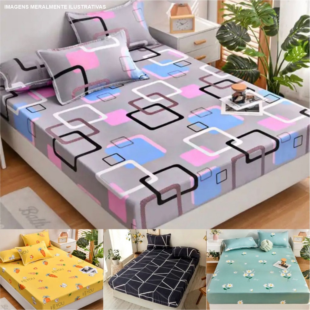 Kit Jogo de Lençol Microfibra Estampado Cama Solteiro / Casal / Queen / King