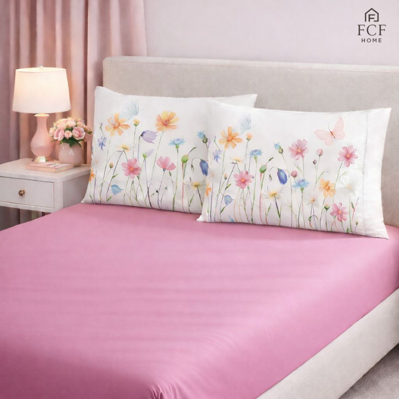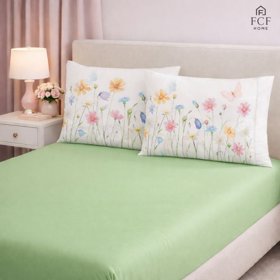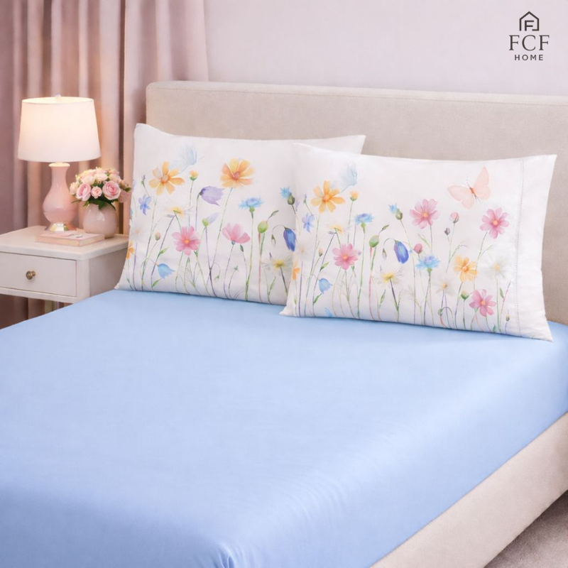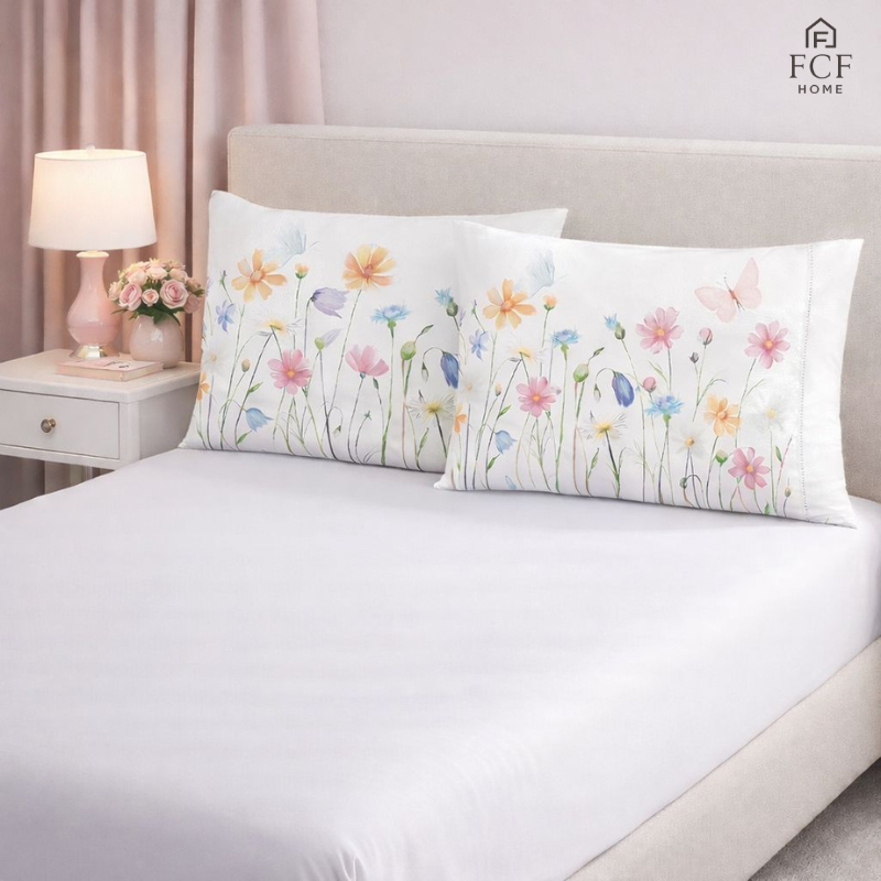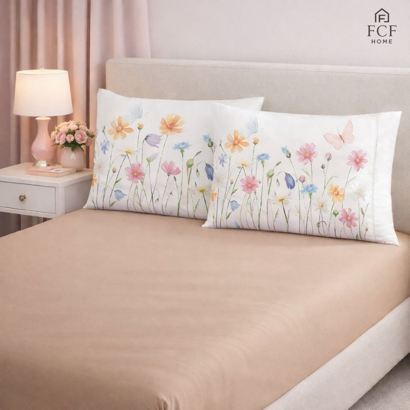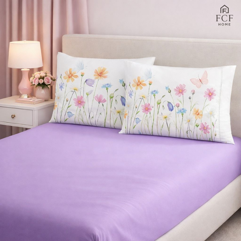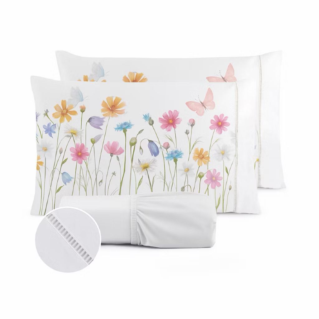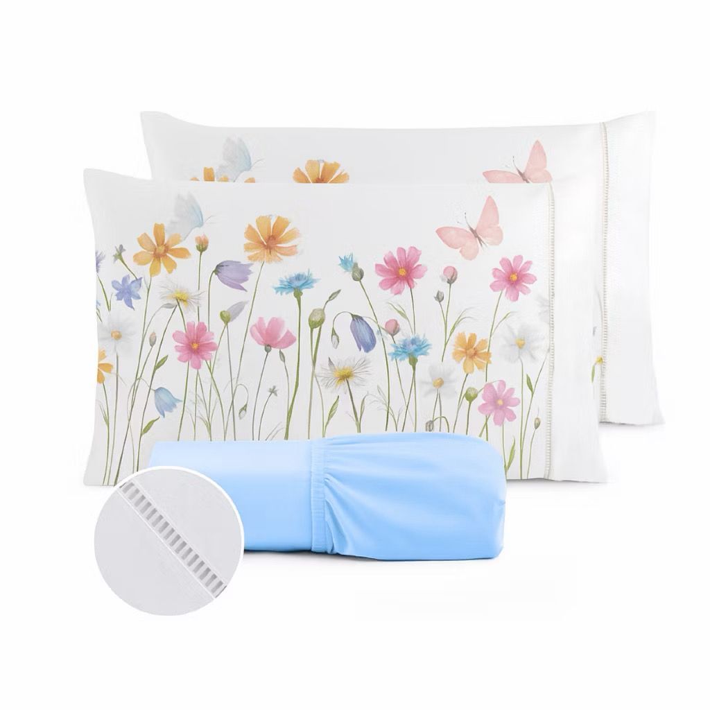 Kit Jogo de Lençol Micropercal 400 Fios Ponto Palito Fronha Aquarela