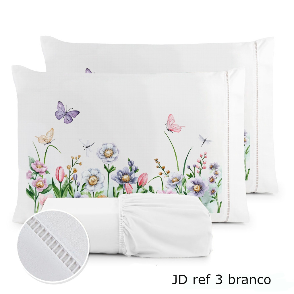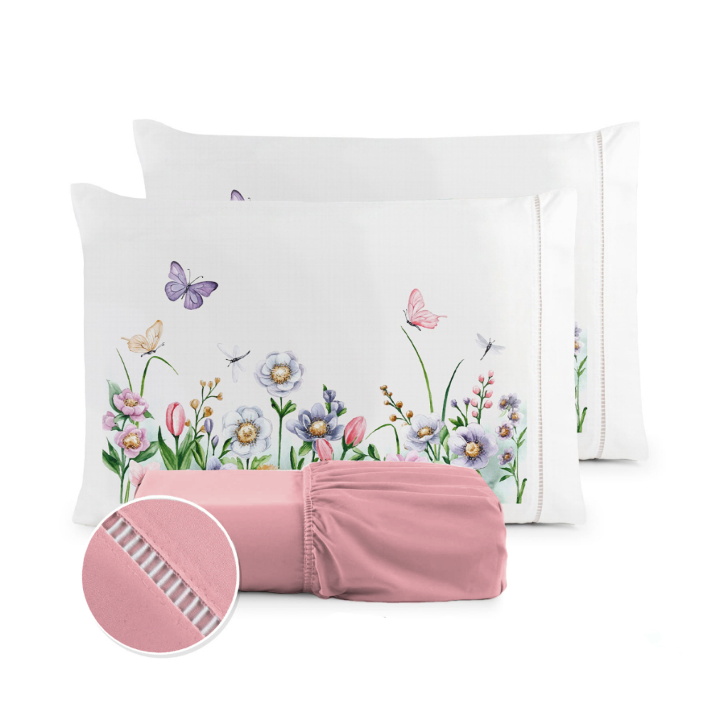 Kit Jogo de Lençol Micropercal 400 Fios Ponto Palito Fronha Estampada
