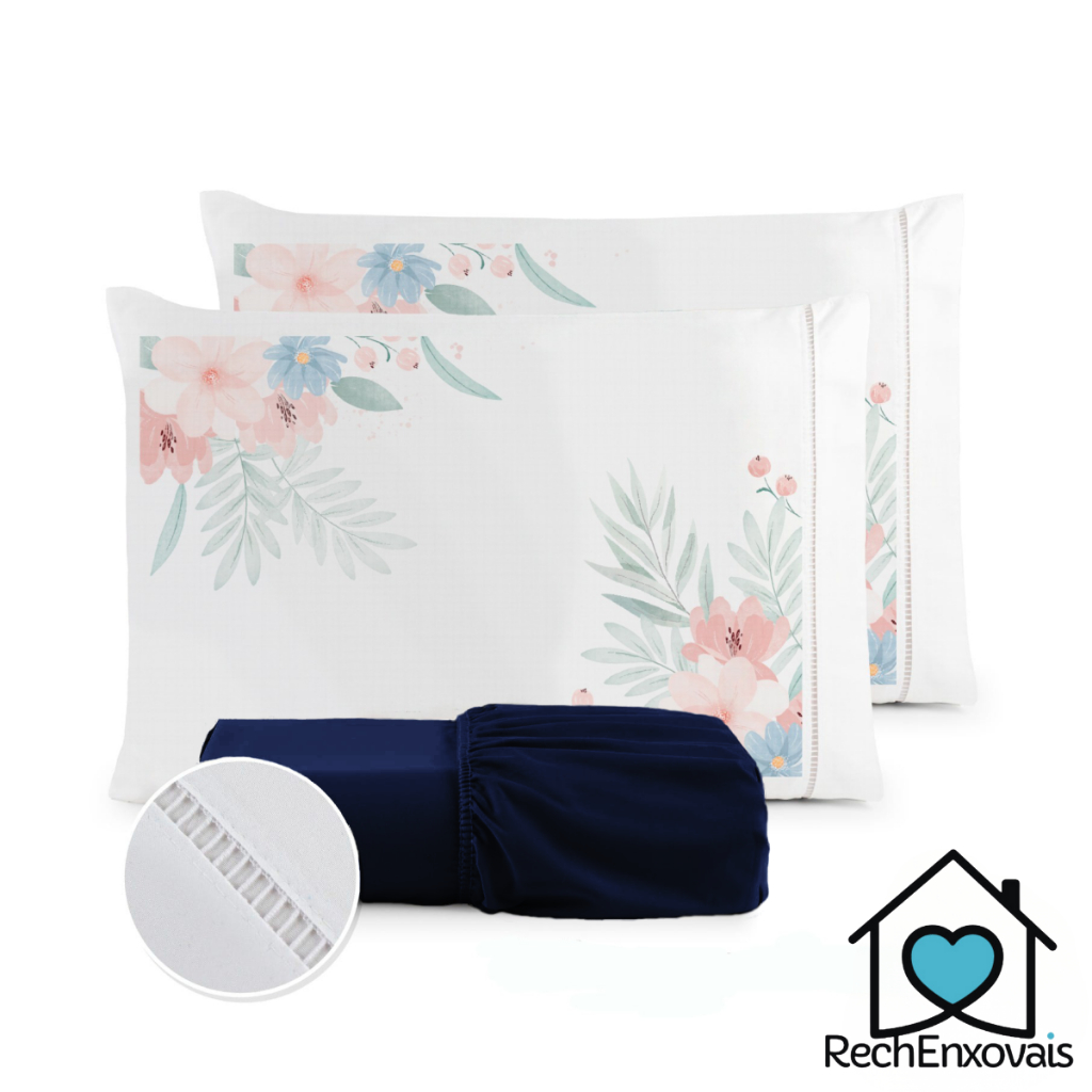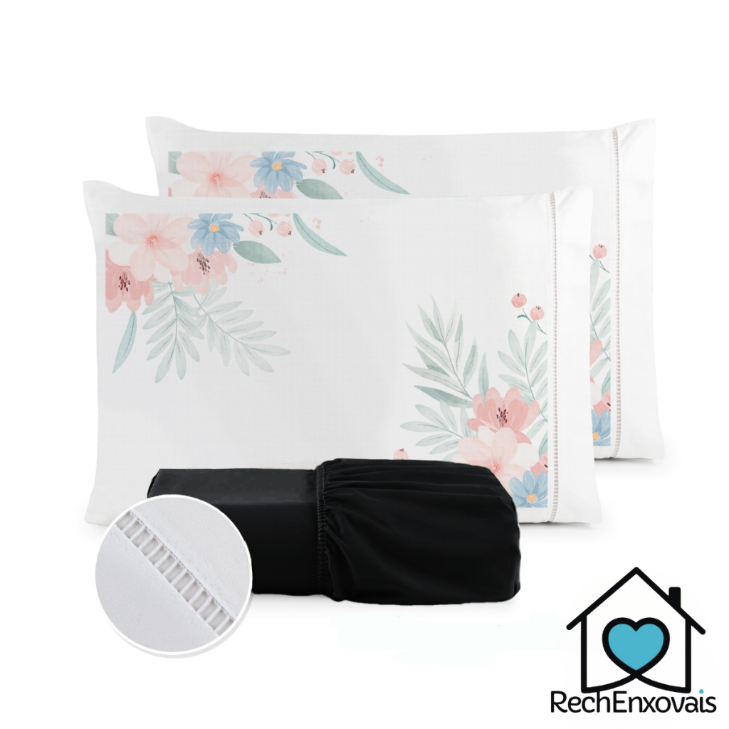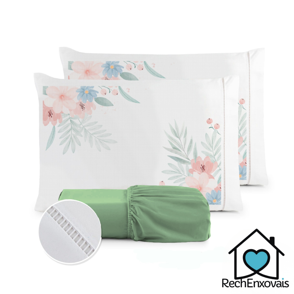 Kit Jogo de Lençol Micropercal 400 Fios Ponto Palito Fronha Estampada