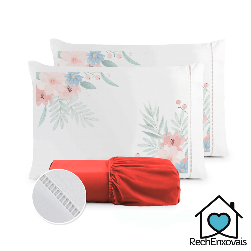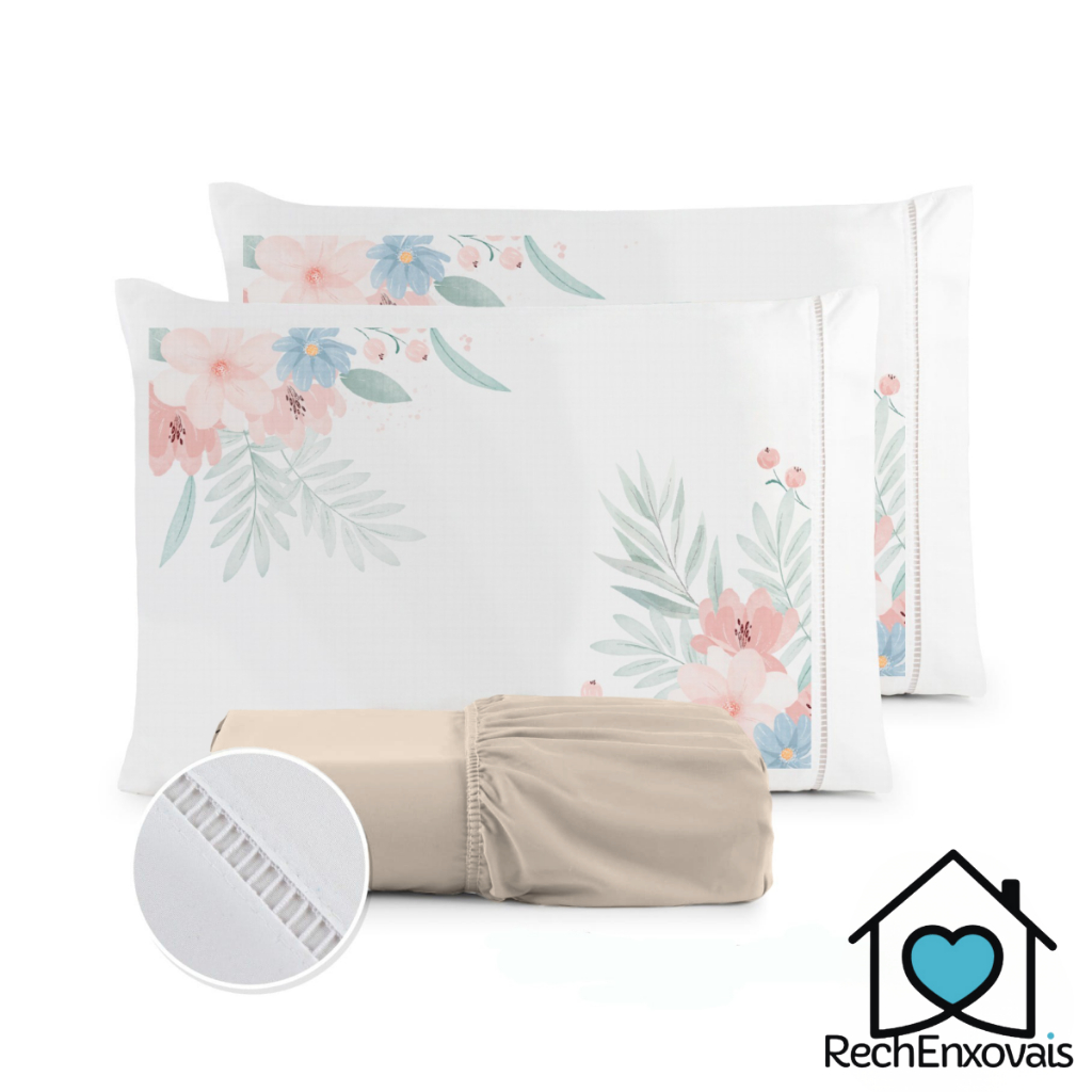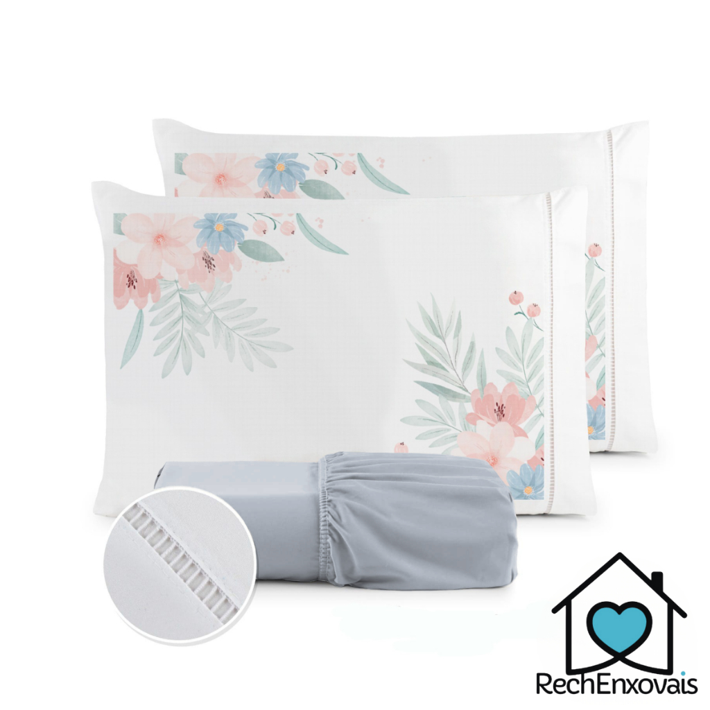 Kit Jogo de Lençol Micropercal 400 Fios Ponto Palito Fronha Estampada