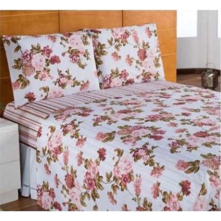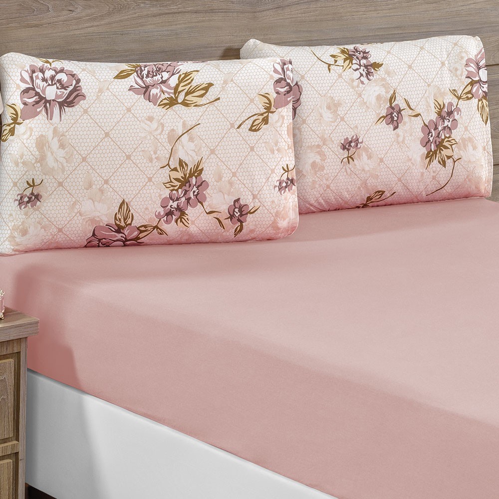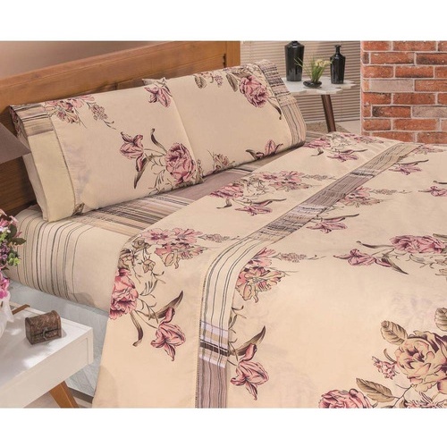 Kit Jogo de Lençol Queen 3 Peças com Elástico 1,98 m x 1,58 m x 0,3 m Altura Estampas Sortidas