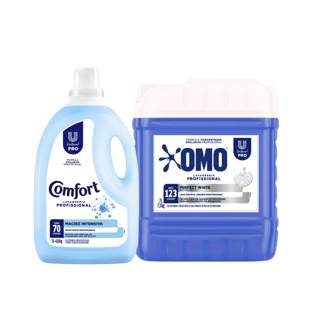 Kit Lava Roupas Lavanderia Perfect White 7L Omo + Amaciante 5L Comfort