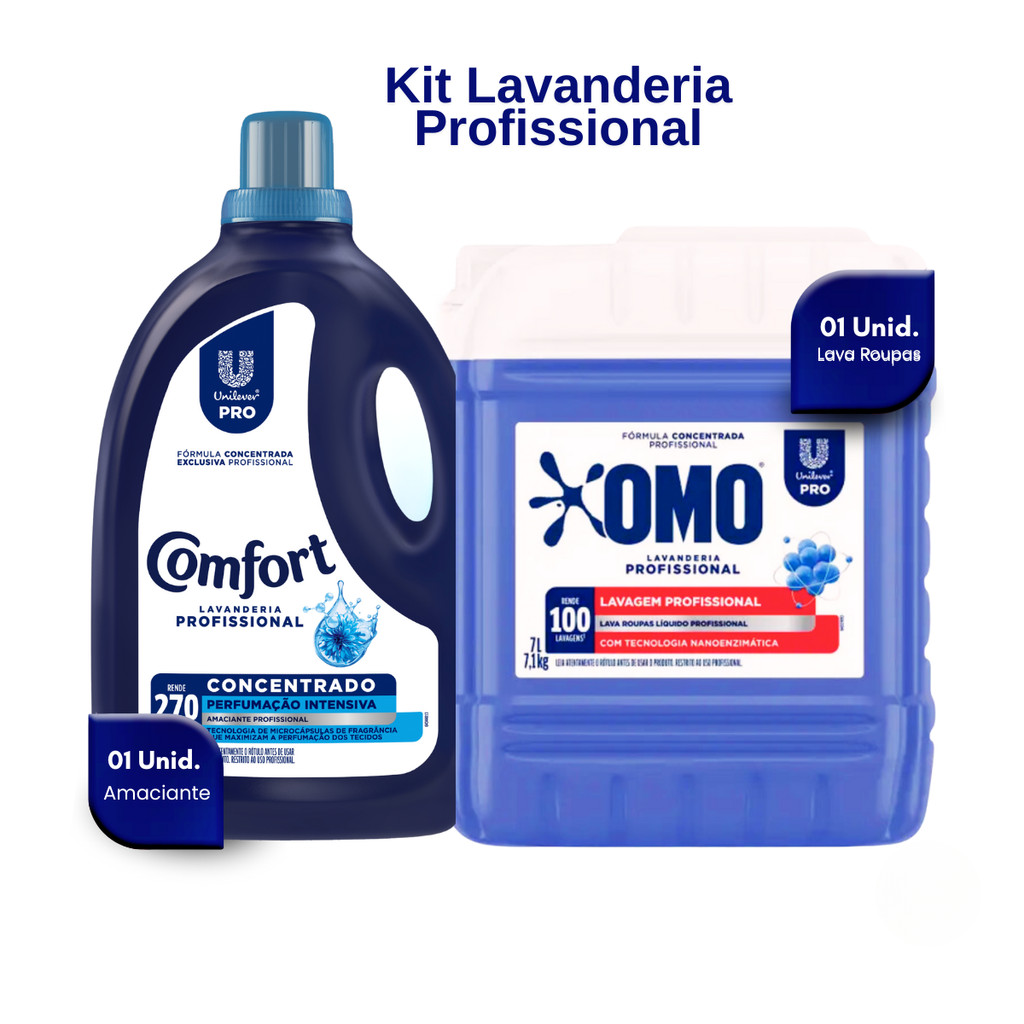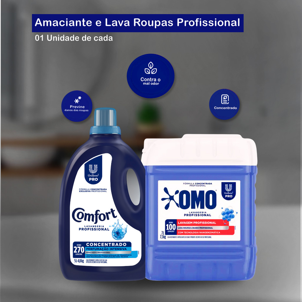 Kit Lava Roupas Lavanderia Pro Omo 7L + Amaciante Comfort 5L