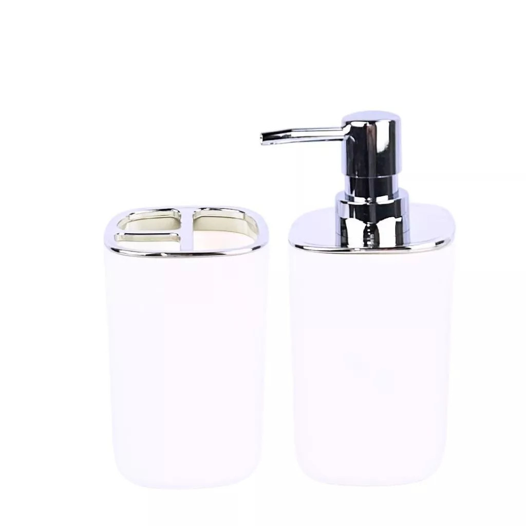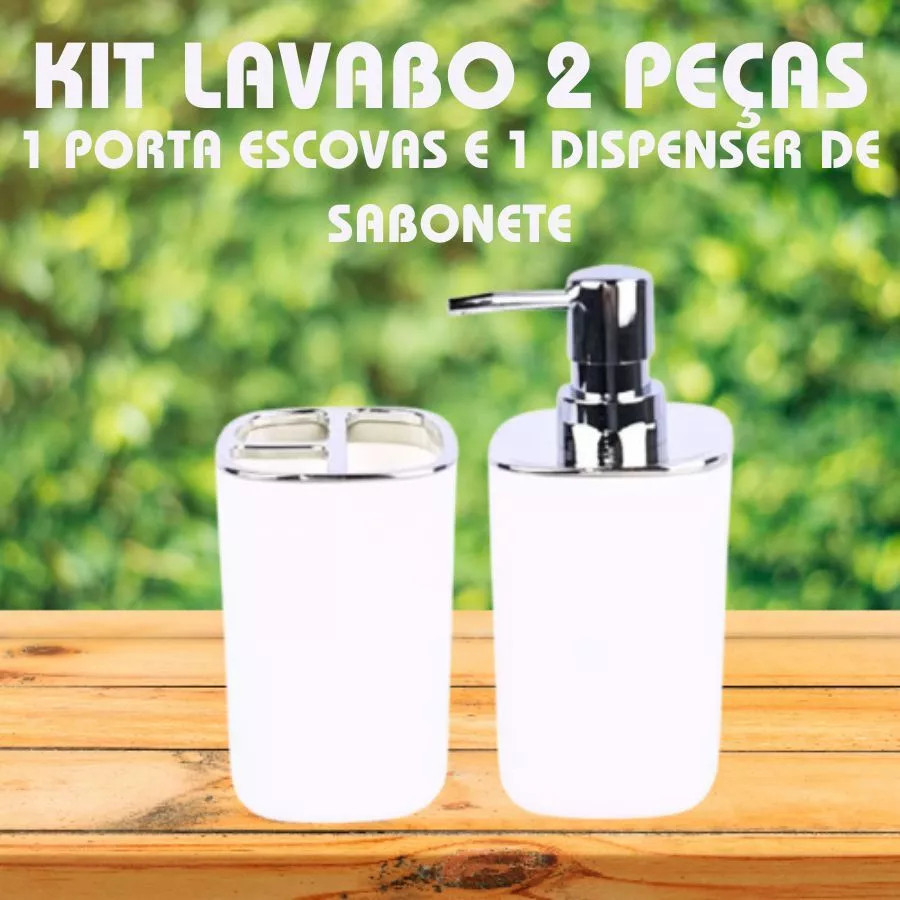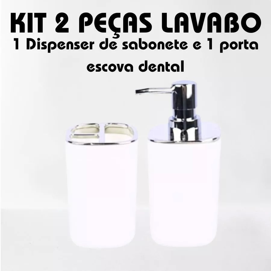 Kit Lavabo 2 Peças Com 1 Dispenser de Sabonete Líquido E 1 Porta Escova De Dente Branco Banheiro Pia