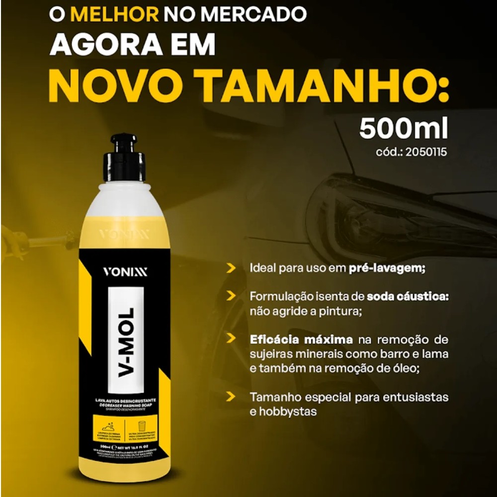 Kit Lavagem Vonixx e Limpeza de Motor Completa para Motos e Carros Shampoo V-Mol Limpador Delet Vexus Verniz de Motor