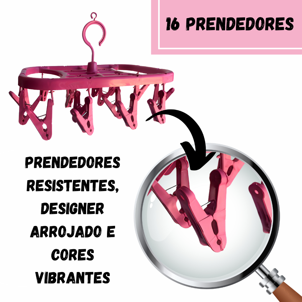 Kit Lavanderia Varal Roupas Íntimas PRETO + Cesto Multiuso CINZA + 48 Prendedores PRETO