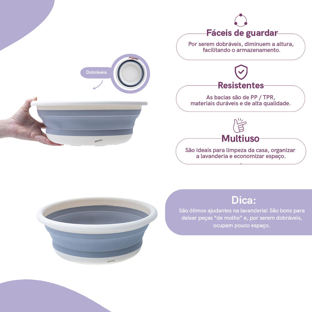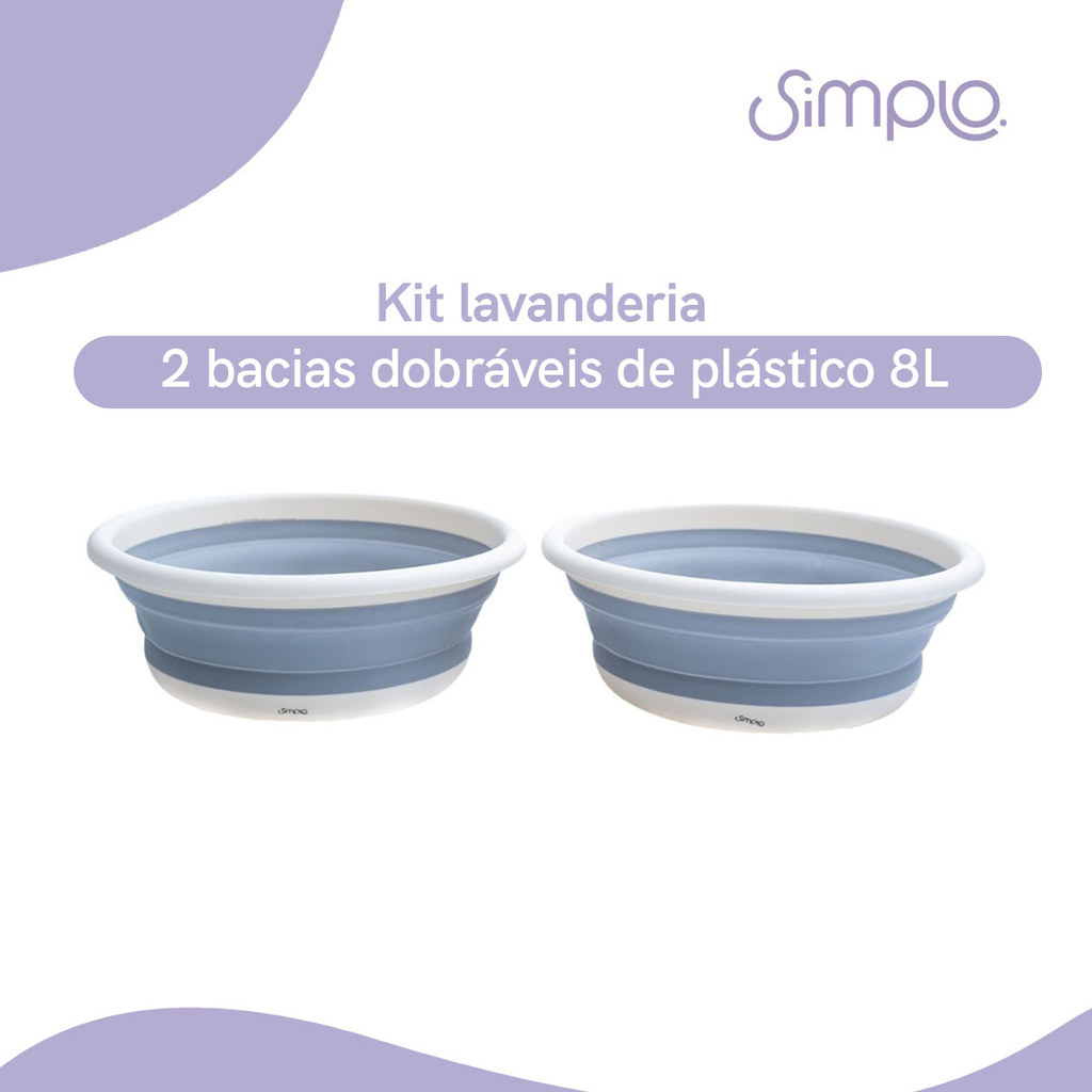 Kit Lavanderia de 2 Bacias Dobráveis de Plástico 8l Simplo