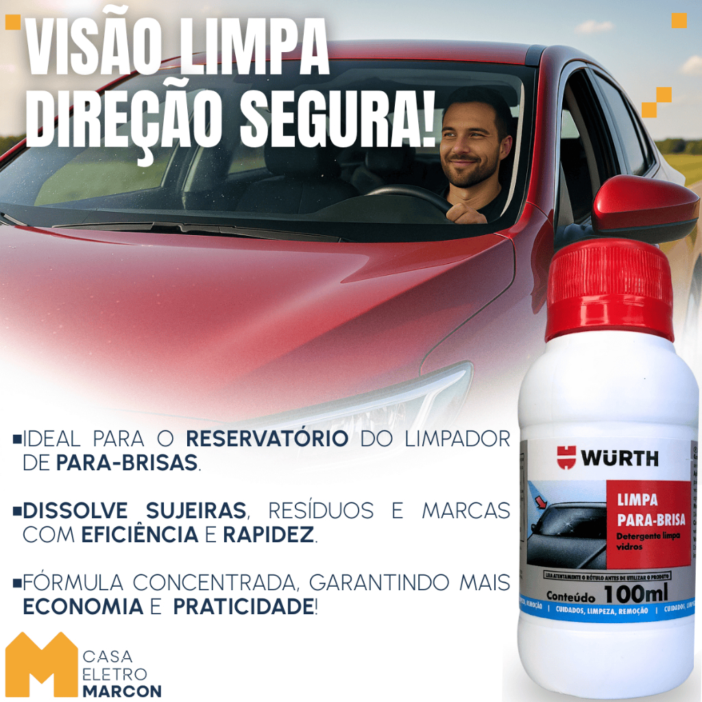 Kit Limpa Para Brisa Wurth 100ml Fluido Liquido Limpeza Parabrisa Automotivo Carro Limpador