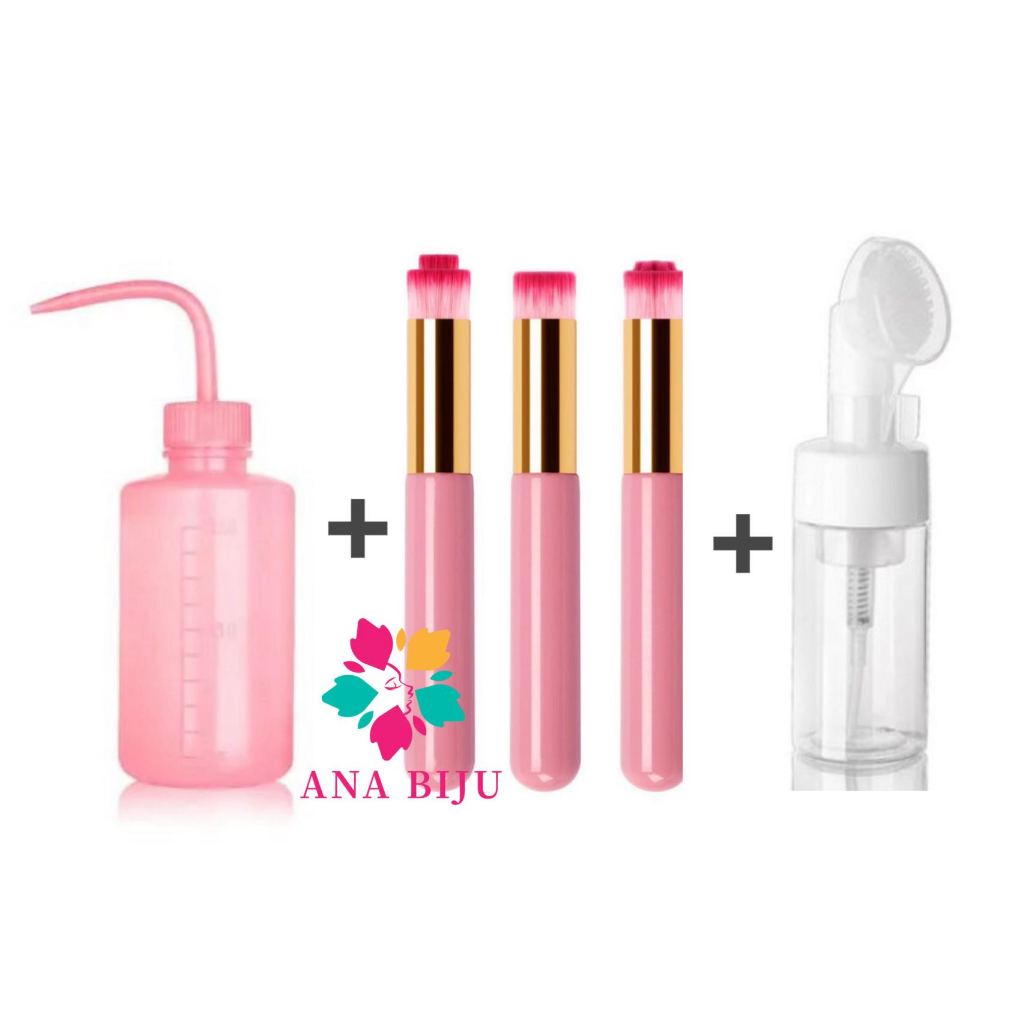 Kit Limpeza Extensão de Cílios Com 120ml Frasco Pump Espumador+3 unidades Pincel+150ml Frascos Dosador Pisseta
