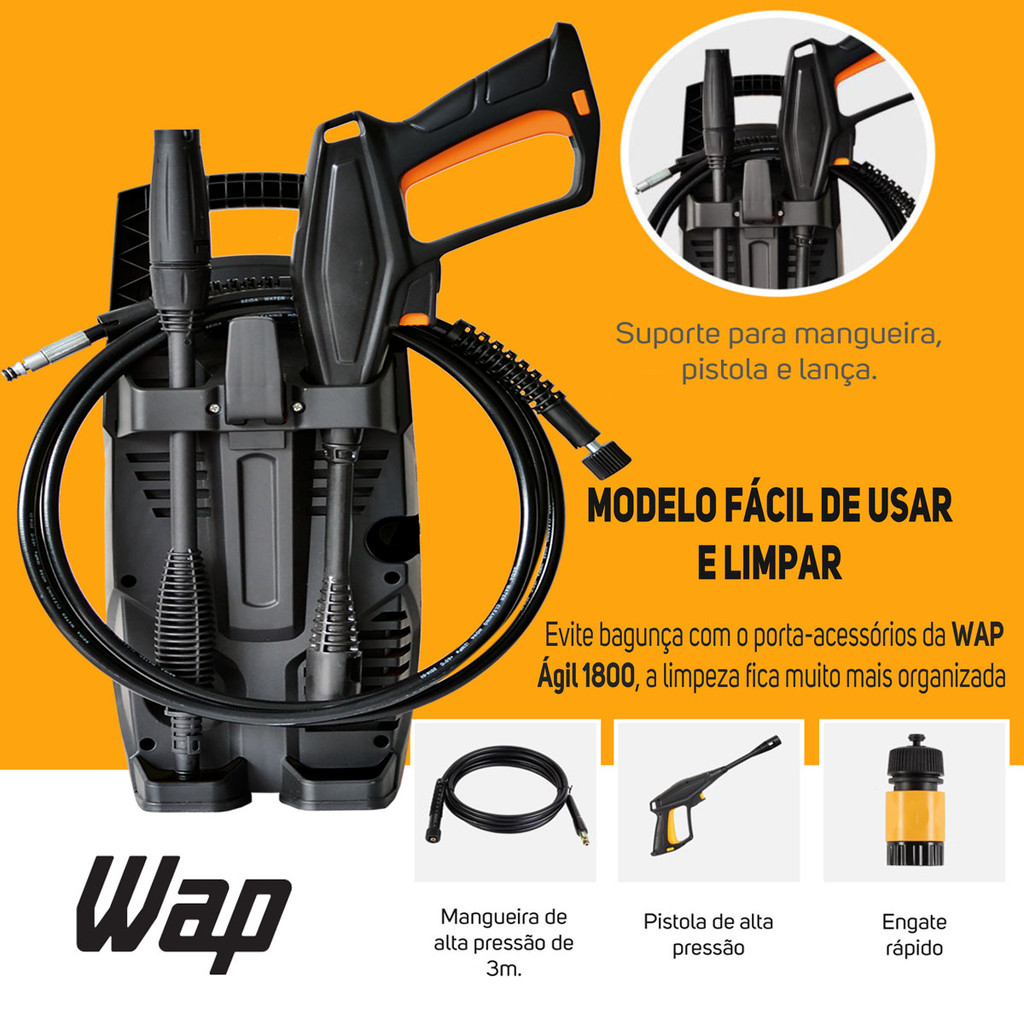 Kit Limpeza Lavadora de Alta Pressão Ágil 1400W Potente com Aspirador de Pó e Água Barril Wap