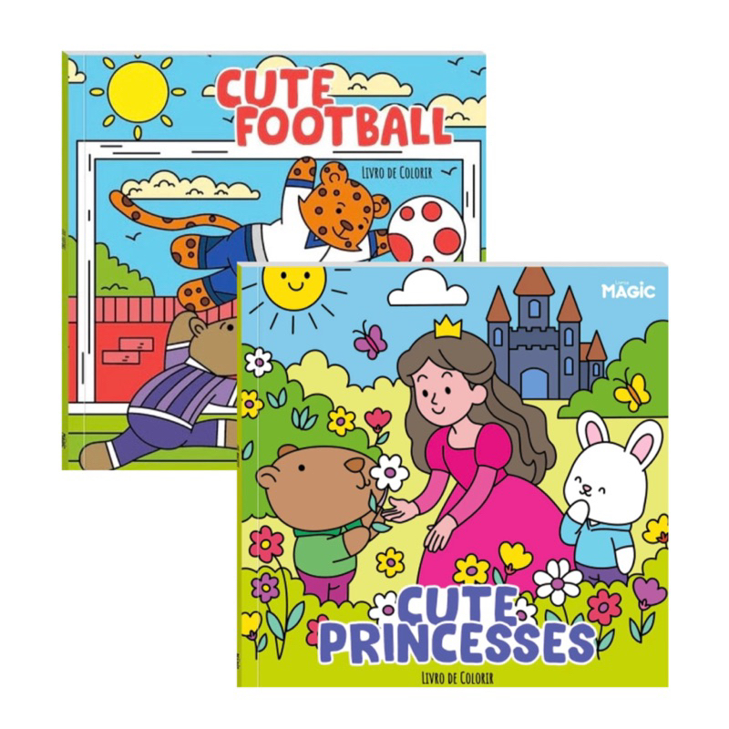Kit Livros Cute Football & Princess P/ Colorir Infantil Futebol Princesas Estilo Bobbie Goods