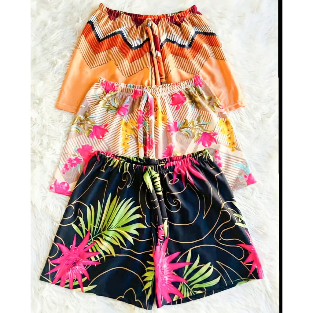 Kit Lote 10 Shortinho Malha Liganete Estampado Com Elástico na Cintura