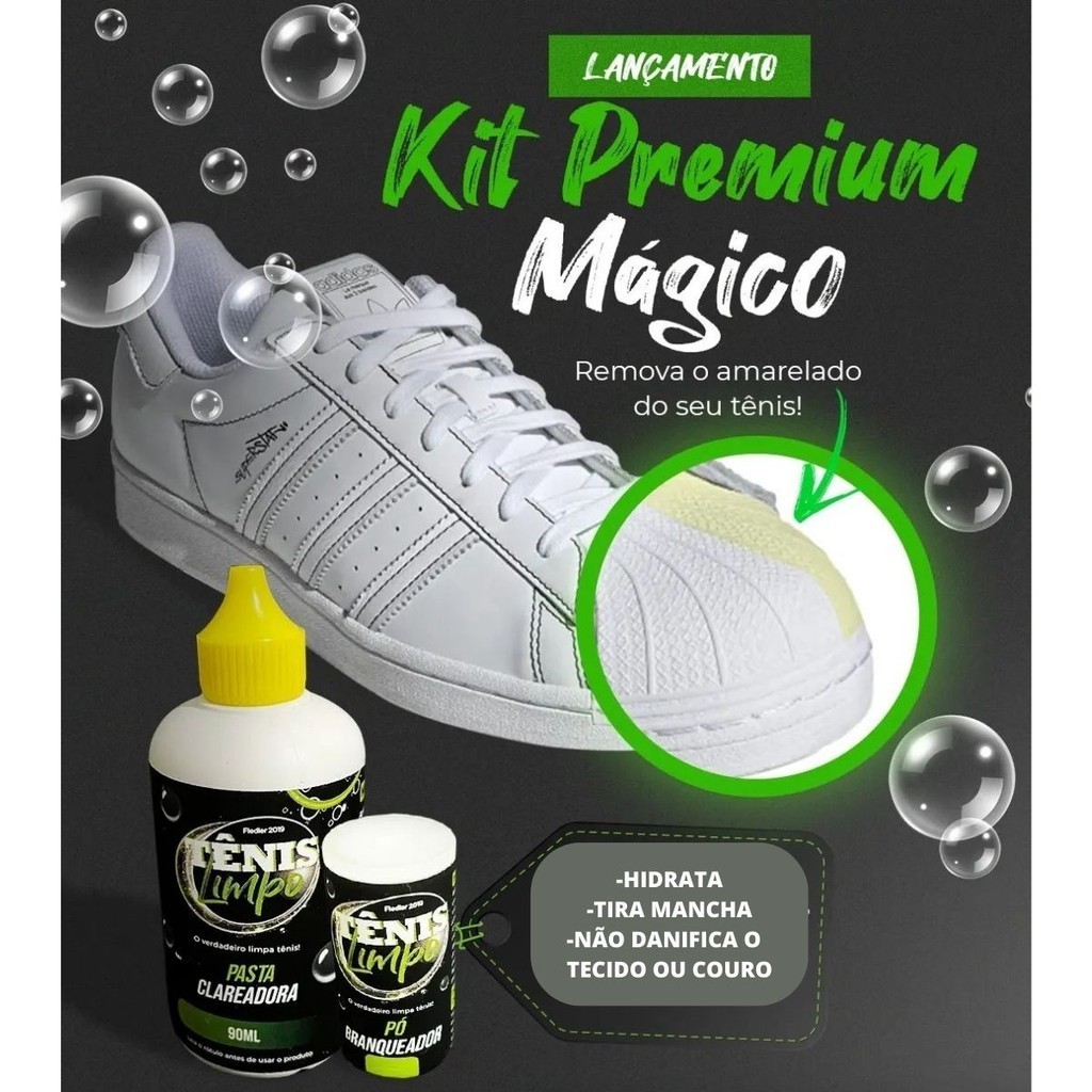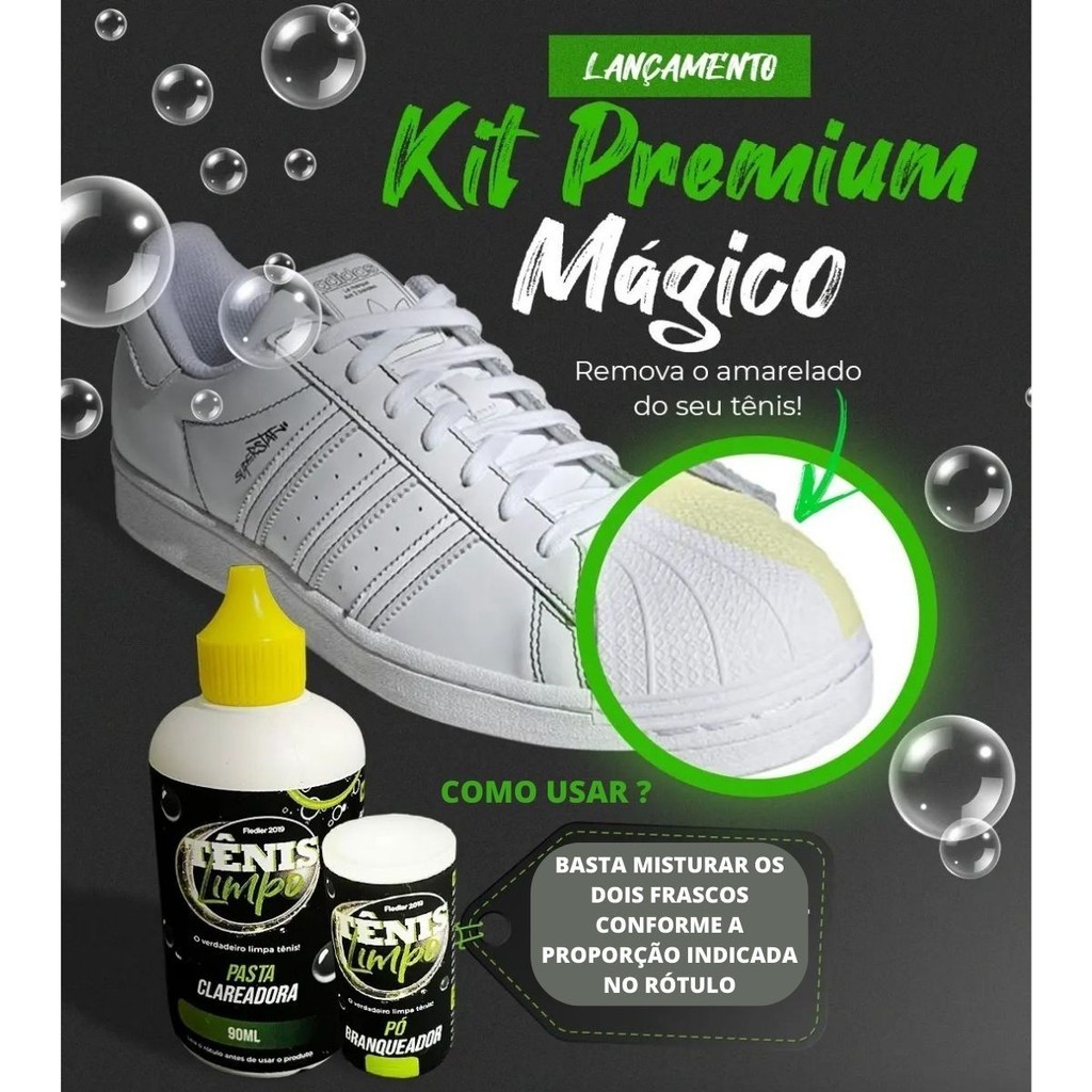 Kit Mágico Removedor Sujeira Amarelado Tênis Sapatos Tecidos