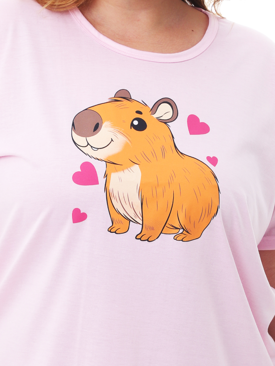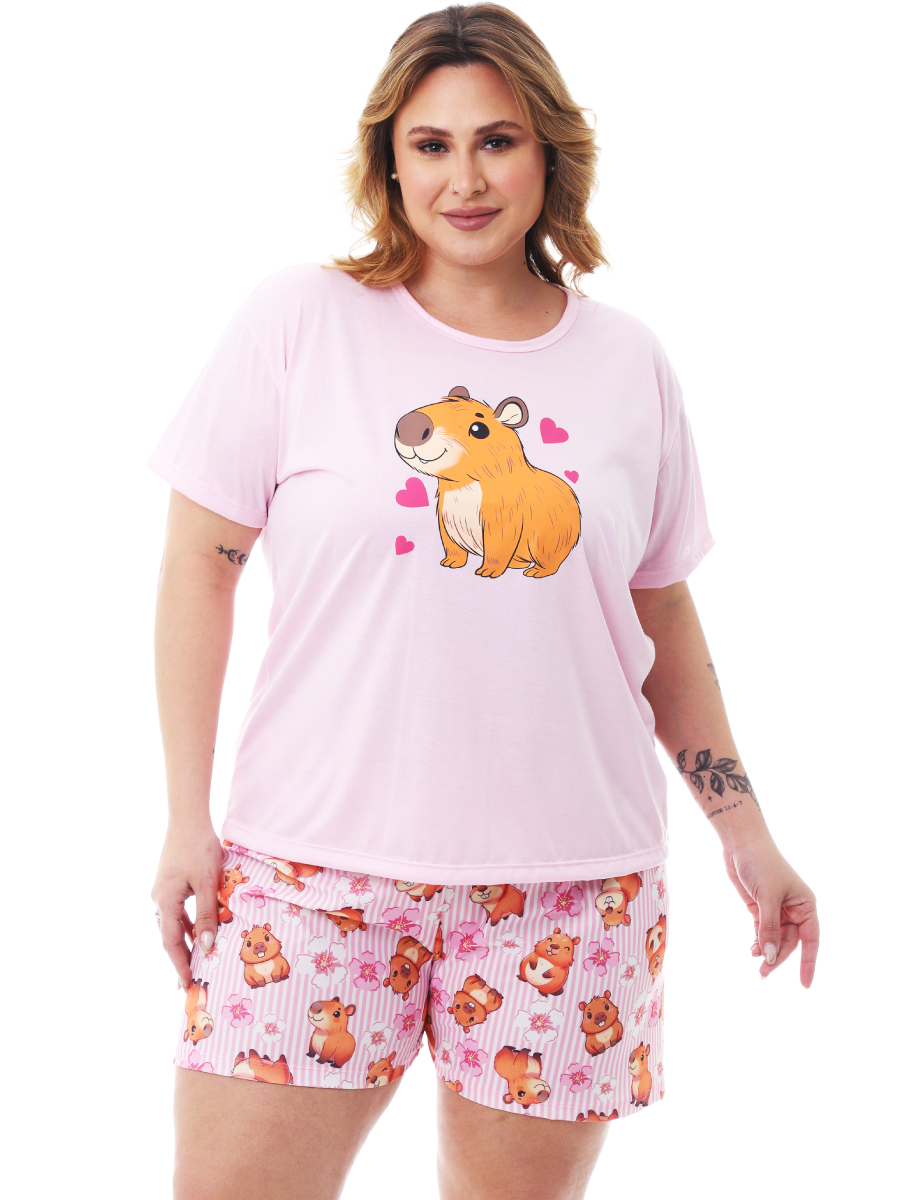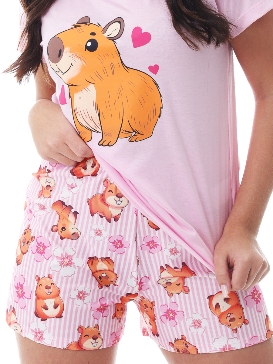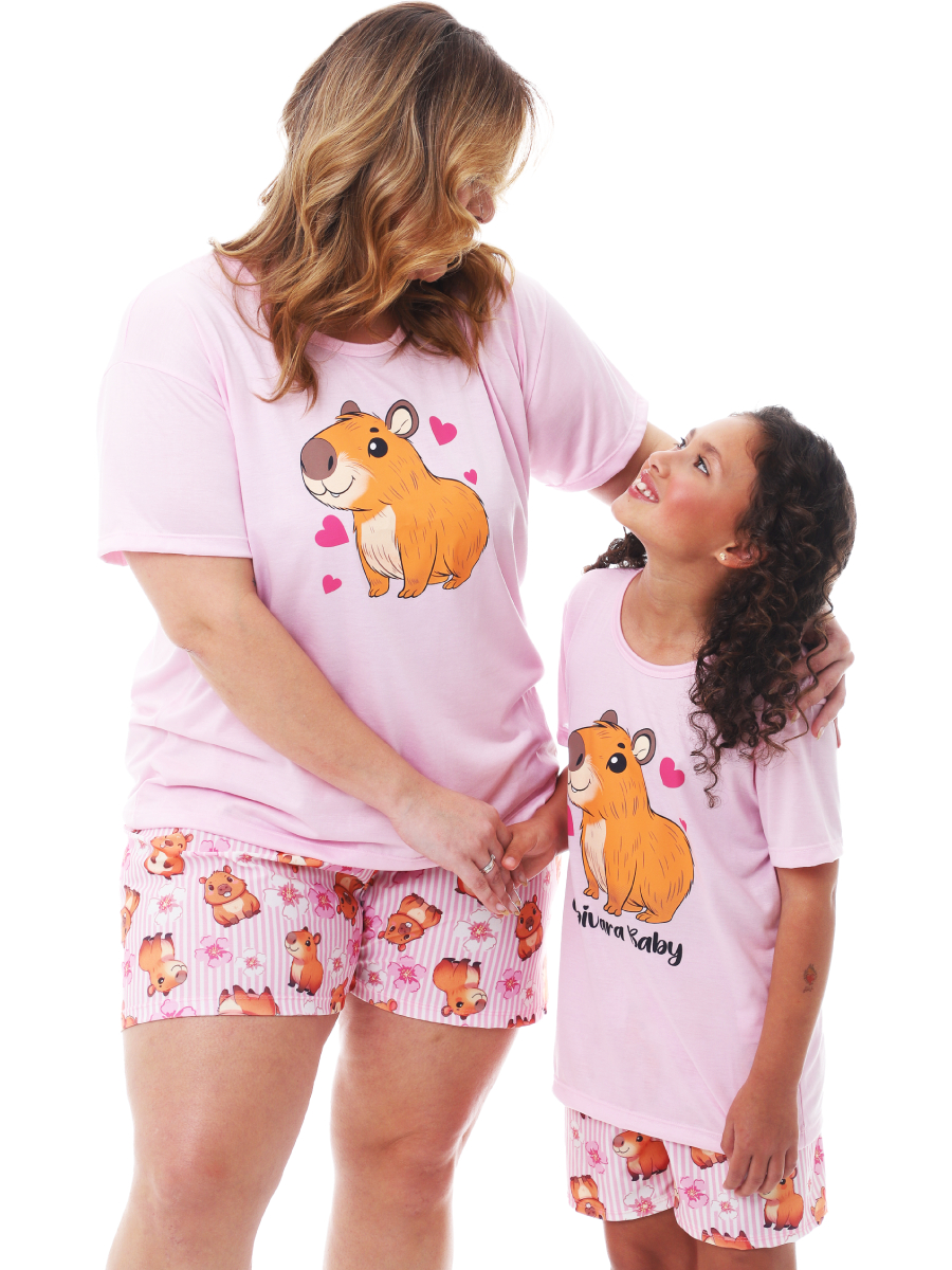 Kit Mãe e Filha Pijama Feminino de Verão / Meia Estação Estampa de Capivara