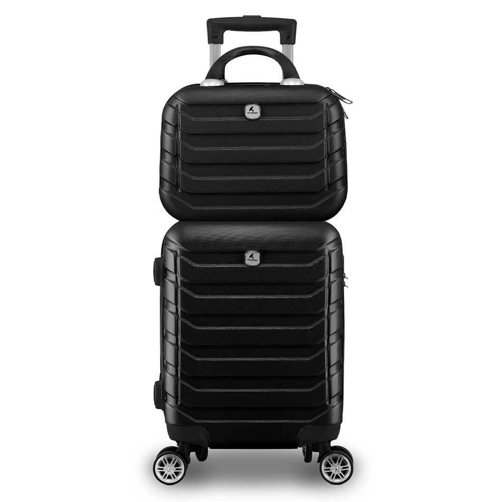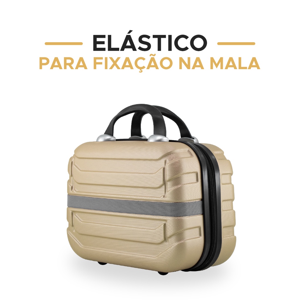 Kit Mala + Necessaire Compacto ABS Rígido Viagem Avião Cadeado Lateral Padrão ANAC