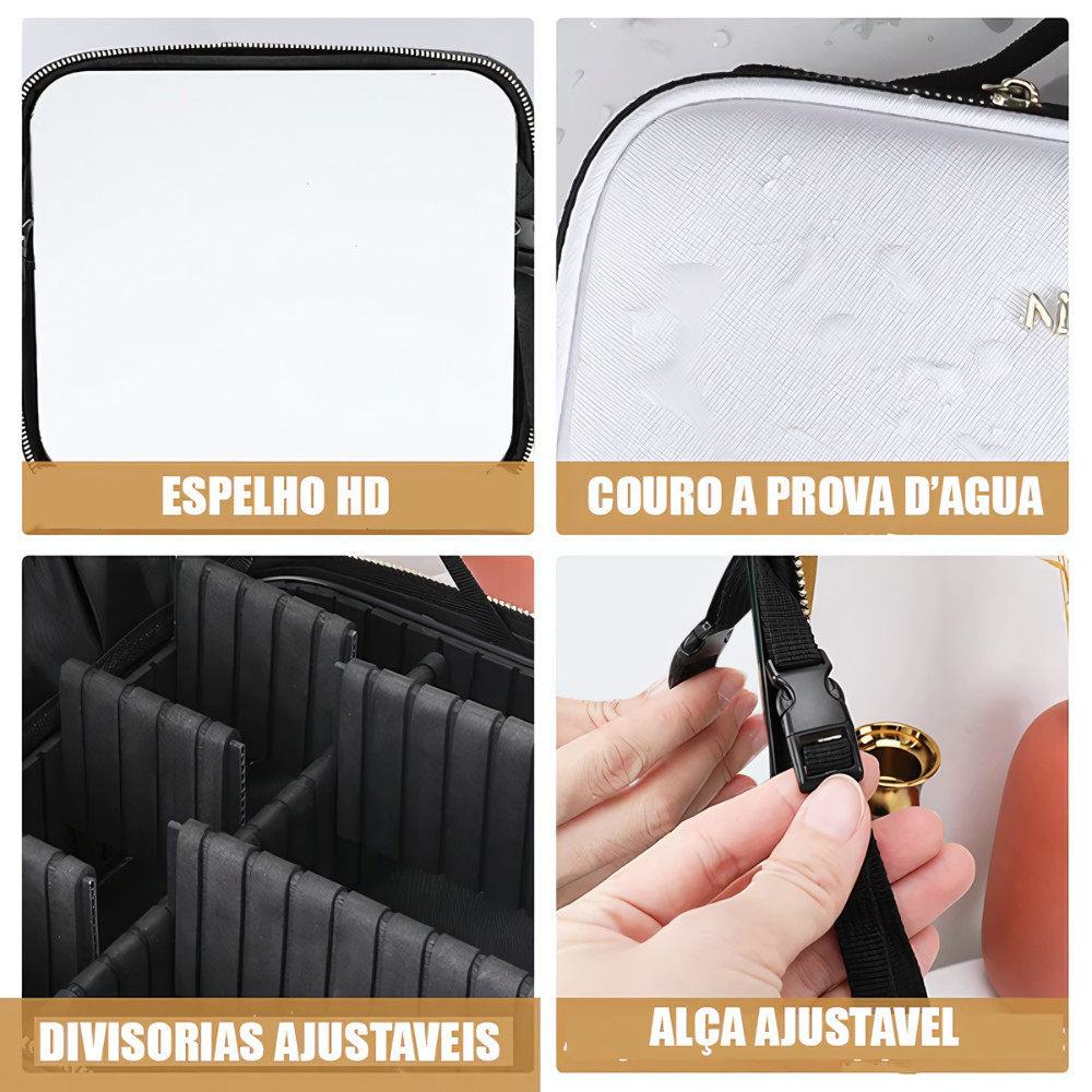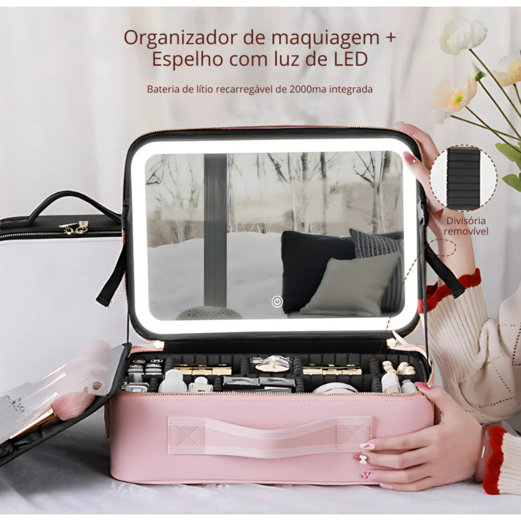 Kit Maleta Maquiagem completo Profissional Com Espelho e Luz Led e paleta de maquiagem