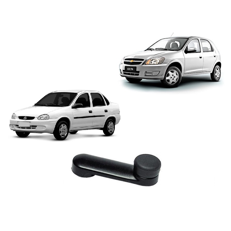 Kit Manivela Vidro Corsa Celta + Trava Presilha - Preto